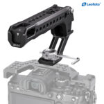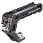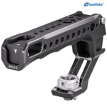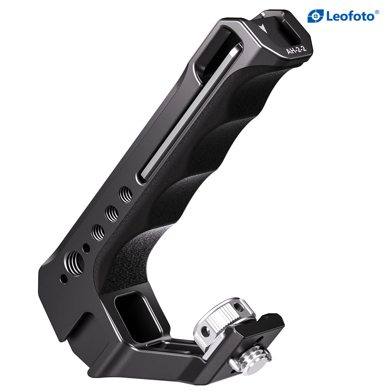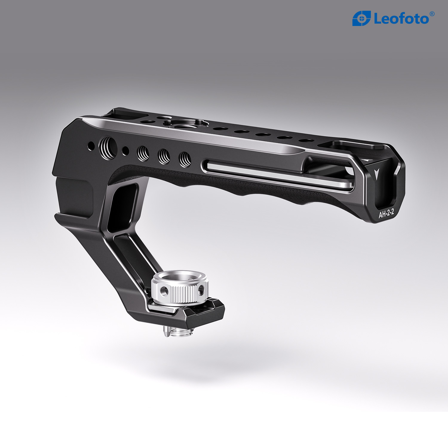The Leofoto AH-2-2 ARRI Locating Top Handle is designed to facilitate low-angle shot and reduce burdens on arms. The handle is CNC machined from 6061-T6 aluminum and hard anodized making it light weight and durable and has an ergonomic silicone grip for added comfort. It features various mounting sockets along the handle that allow simultaneously mounting microphone, LED light, monitor, and other accessories. There is also a magnetized allen wrench integrated into the handle for convenient adjustments. Overall, the lightweight and practical handle can provide a wide range of mounting points and an excellent shooting experience.