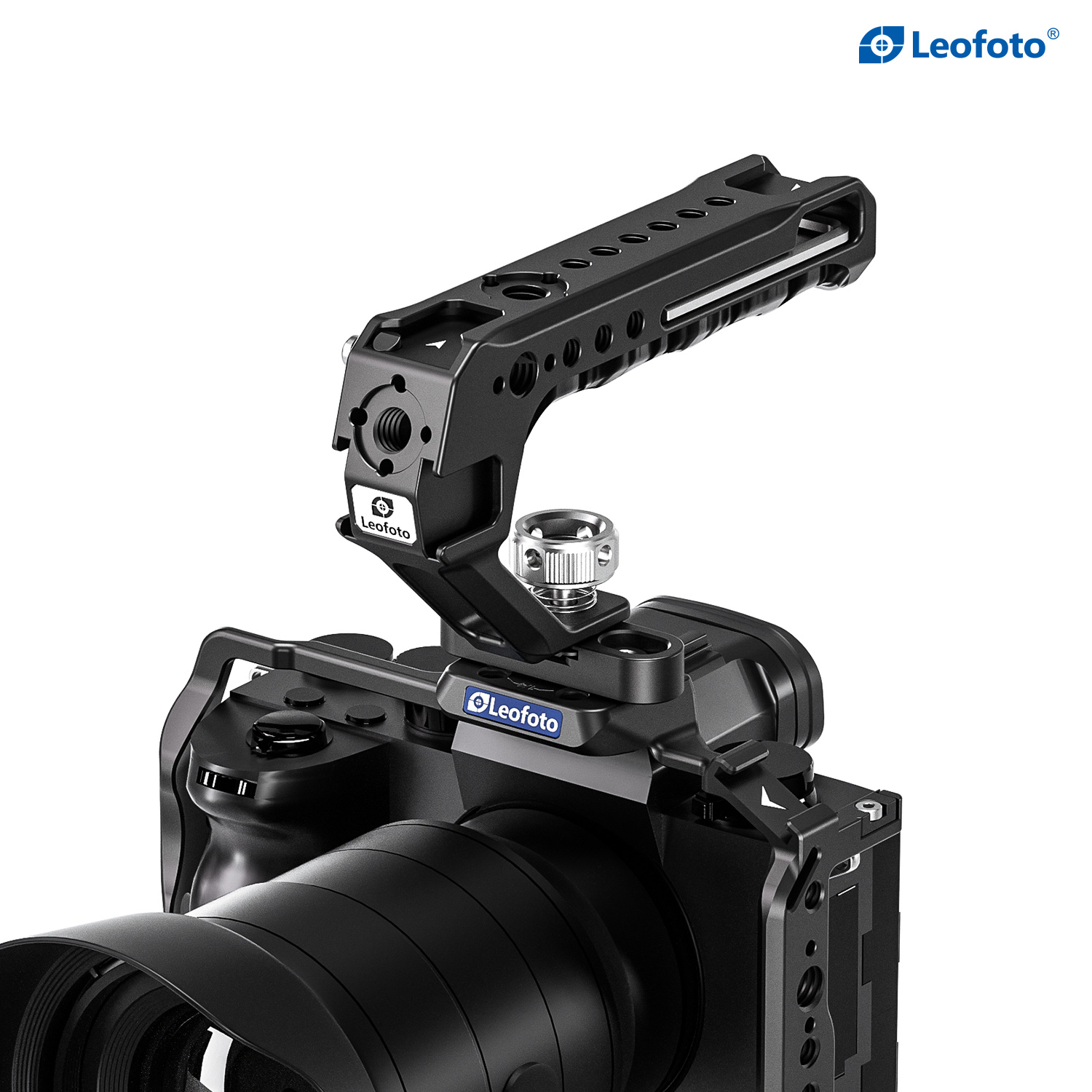 The Leofoto AH-2-3 Top Handle with Cold Shoe is a universal handle with cold shoe, simple and ergonomically designed to offer a comfortable handheld shooting experience. The handle is CNC machined from 6061-T6 aluminum and hard anodized making it light weight and durable and has an ergonomic silicone grip for added comfort. It features various mounting sockets along the handle that allow simultaneously mounting microphone, LED light, monitor, and other accessories. There is also a magnetized allen wrench integrated into the handle for convenient adjustments. Overall, the lightweight and practical handle can provide a wide range of mounting points and an excellent shooting experience.
