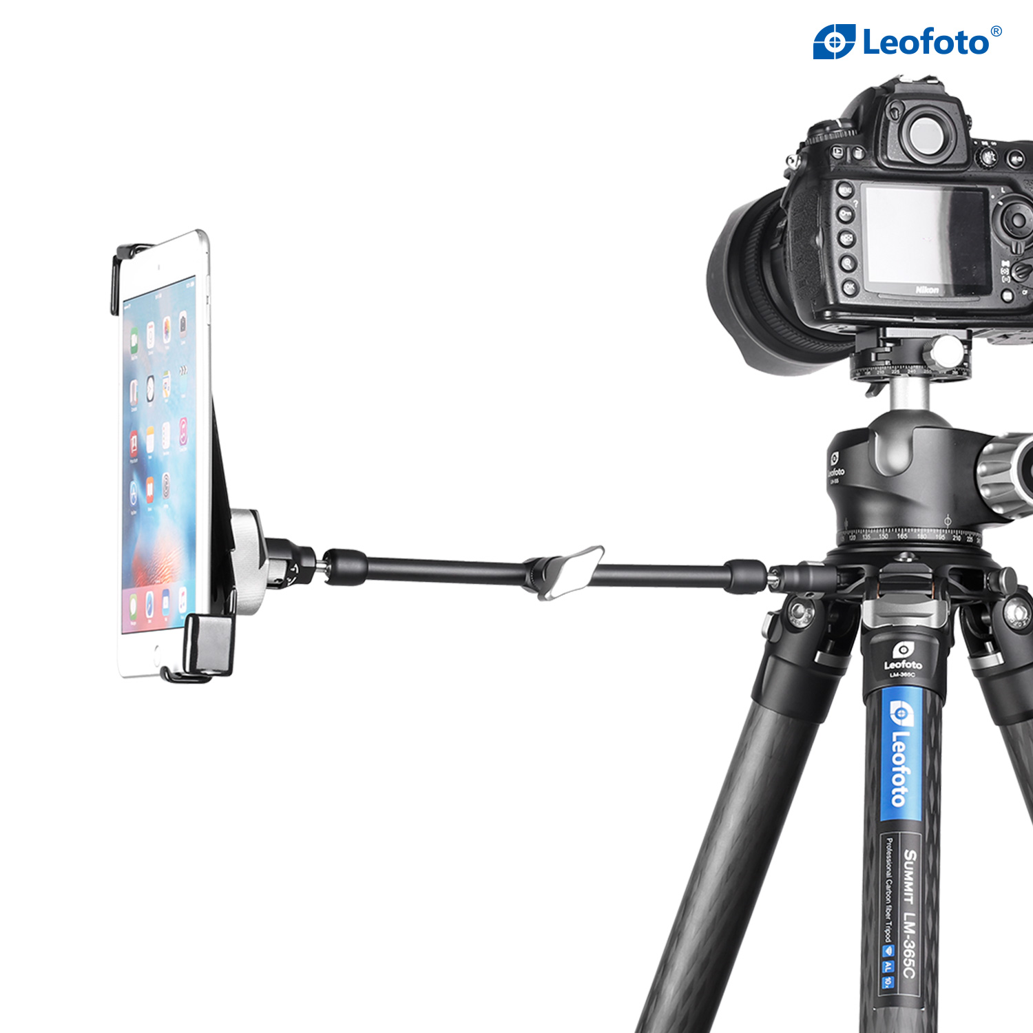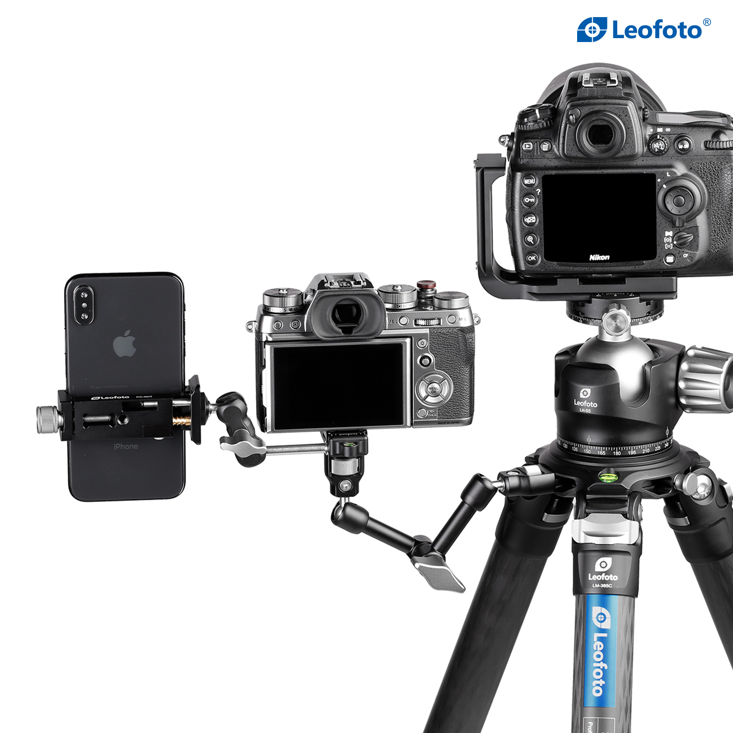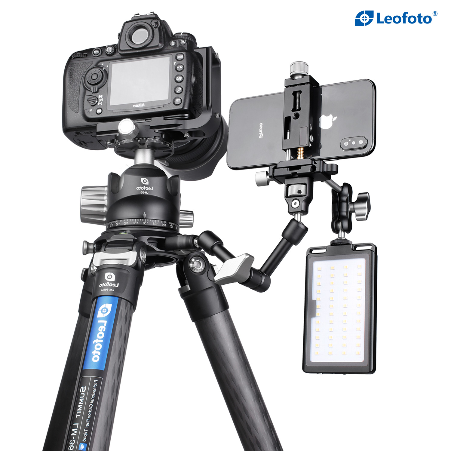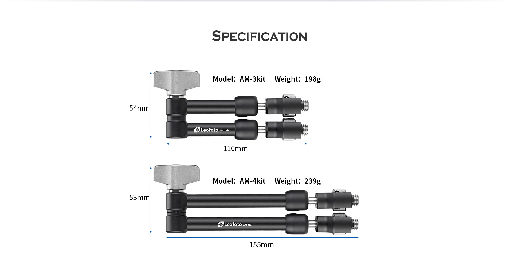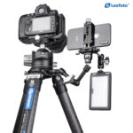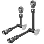 The Leofoto AM Series Versa Magic Arm Kit is a multi-purpose tripod accessory that attaches to the leg of select Leofoto tripods, or other tripods and camera brackets with a 3/8th threaded hole. The magic-arm allows a light, microphone, monitor, smartphone, tablet, or even an additional camera to be affixed to a camera rig without the added bulk of a clamp. Each end of the magic arm features a ball-and-socket joint that rotates 360°, and the center elbow joint locks in any position. The large, easy-to-grip center knob locks all three movements simultaneously for quick and easy setup and repositioning. The “kit” version features anti-twist lock adapters on either end as well as 3/8th mounting studs.