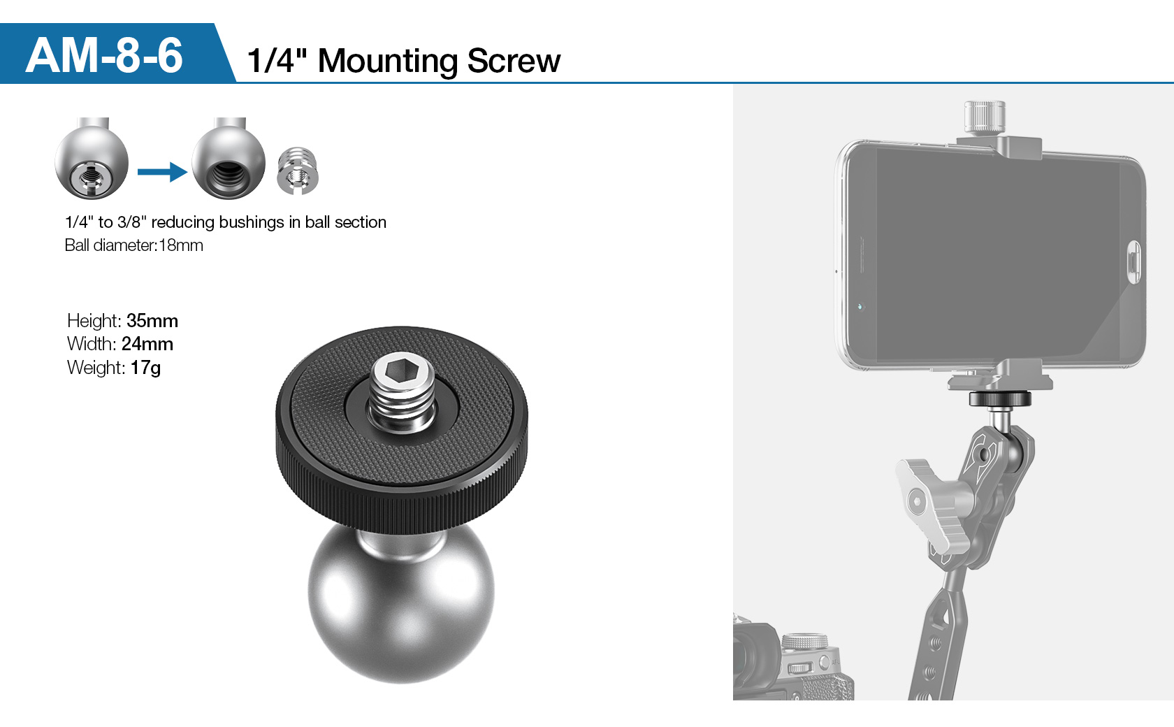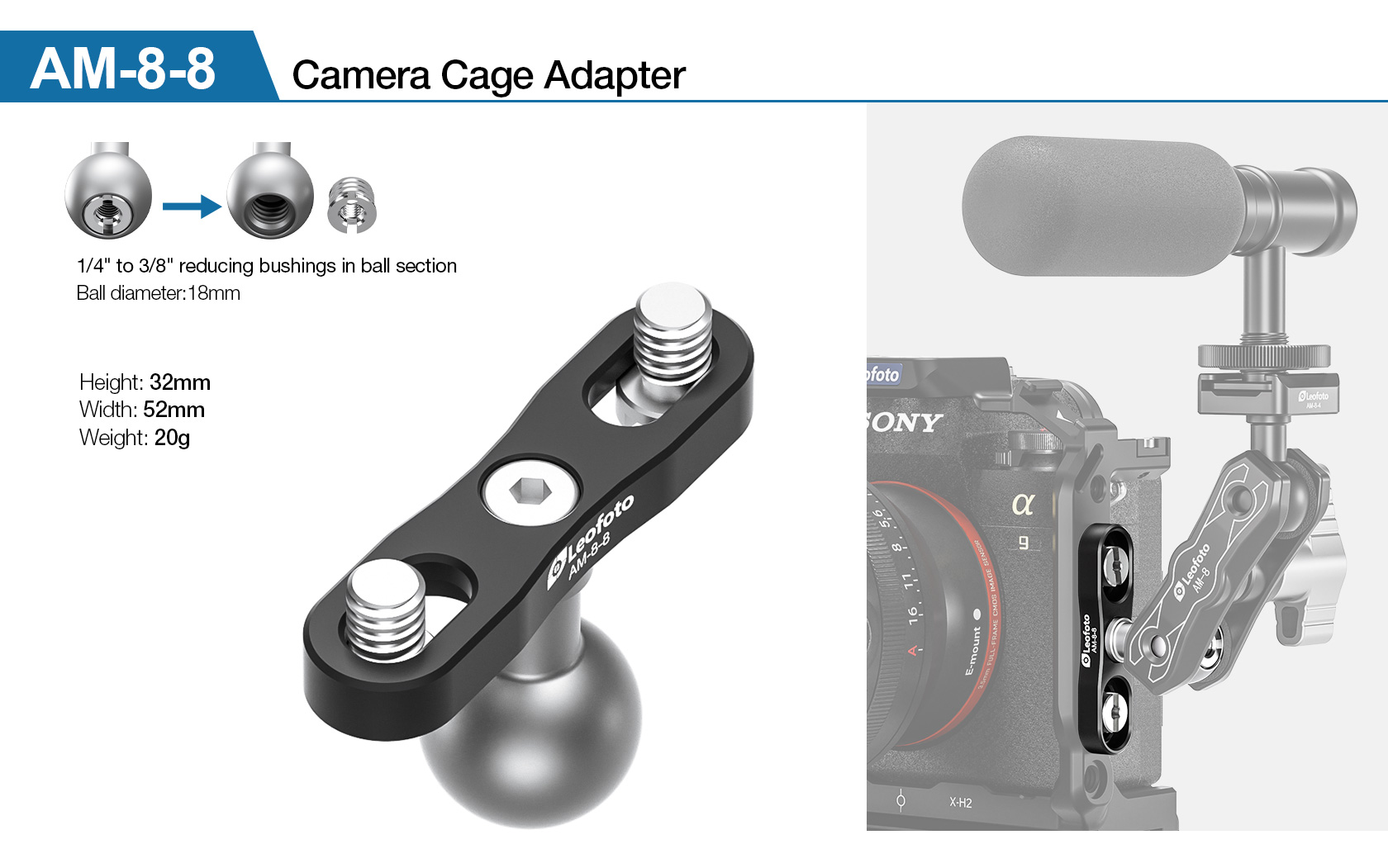 The Leofoto AM-8 Professional Magic Arm is one of the most adaptable magic arms in the industry. The AM-8 main body from the AM-8 kit, can be combined with all the other AM-8 various arm lengths and adapters to create the most ideal setup for the user. With the endless amount of mounting options, this magic arm can be used in a myriad of tasks.