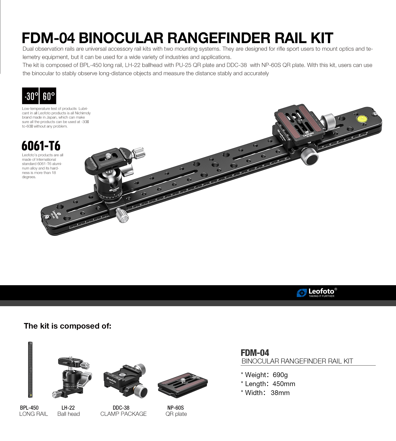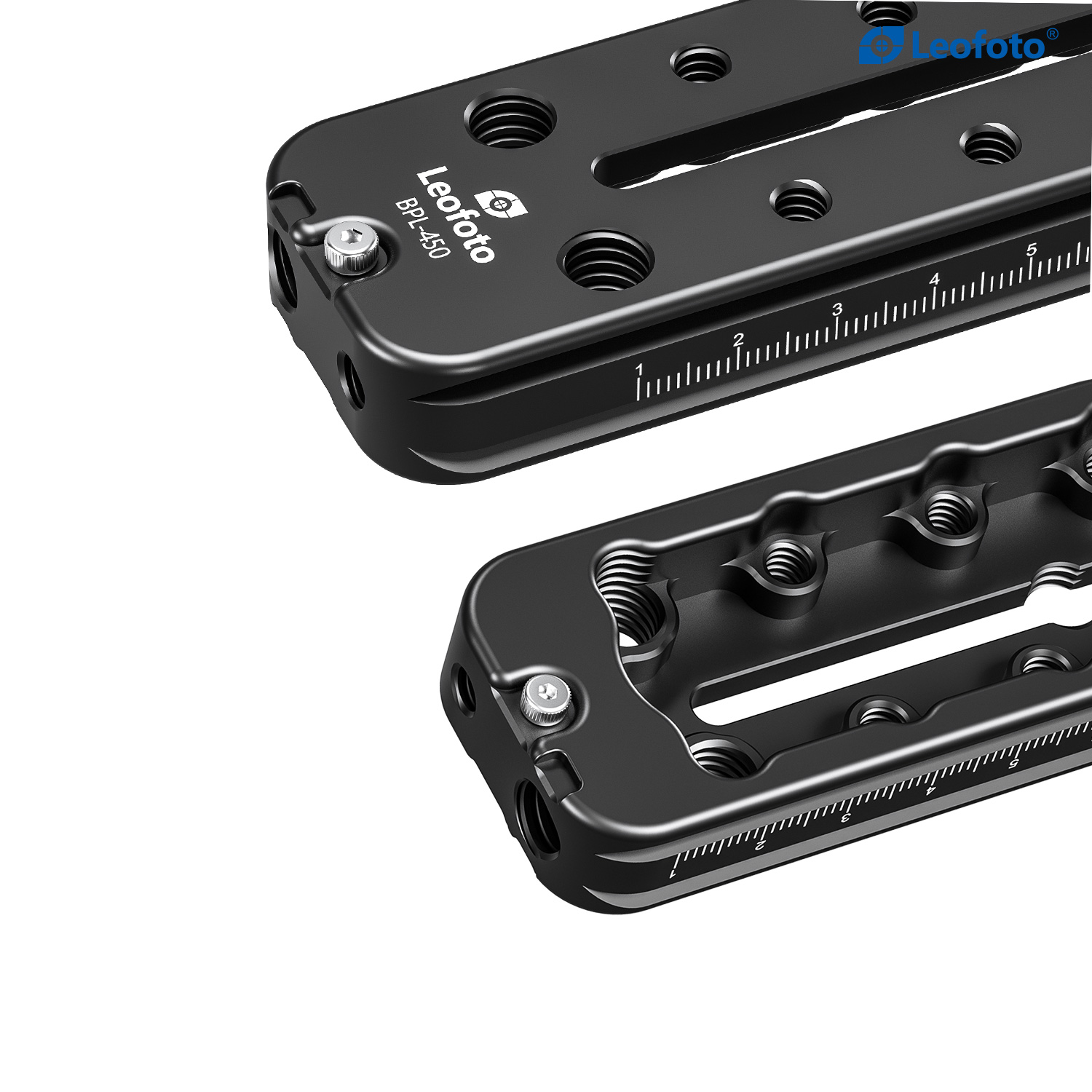 BPL-450 Double Arca Long Rail (450mm / 17.71in)This rail features an Arca profile on the bottom and top of the rail, which allows for multiple mounting options at any position. The bottom profile enables the rail to be moved to any position in an Arca clamp, accommodating a variety of installed equipment. A large top-mounted bubble level allows for quick and easy leveling of the rail for level panning and accurate measurements.