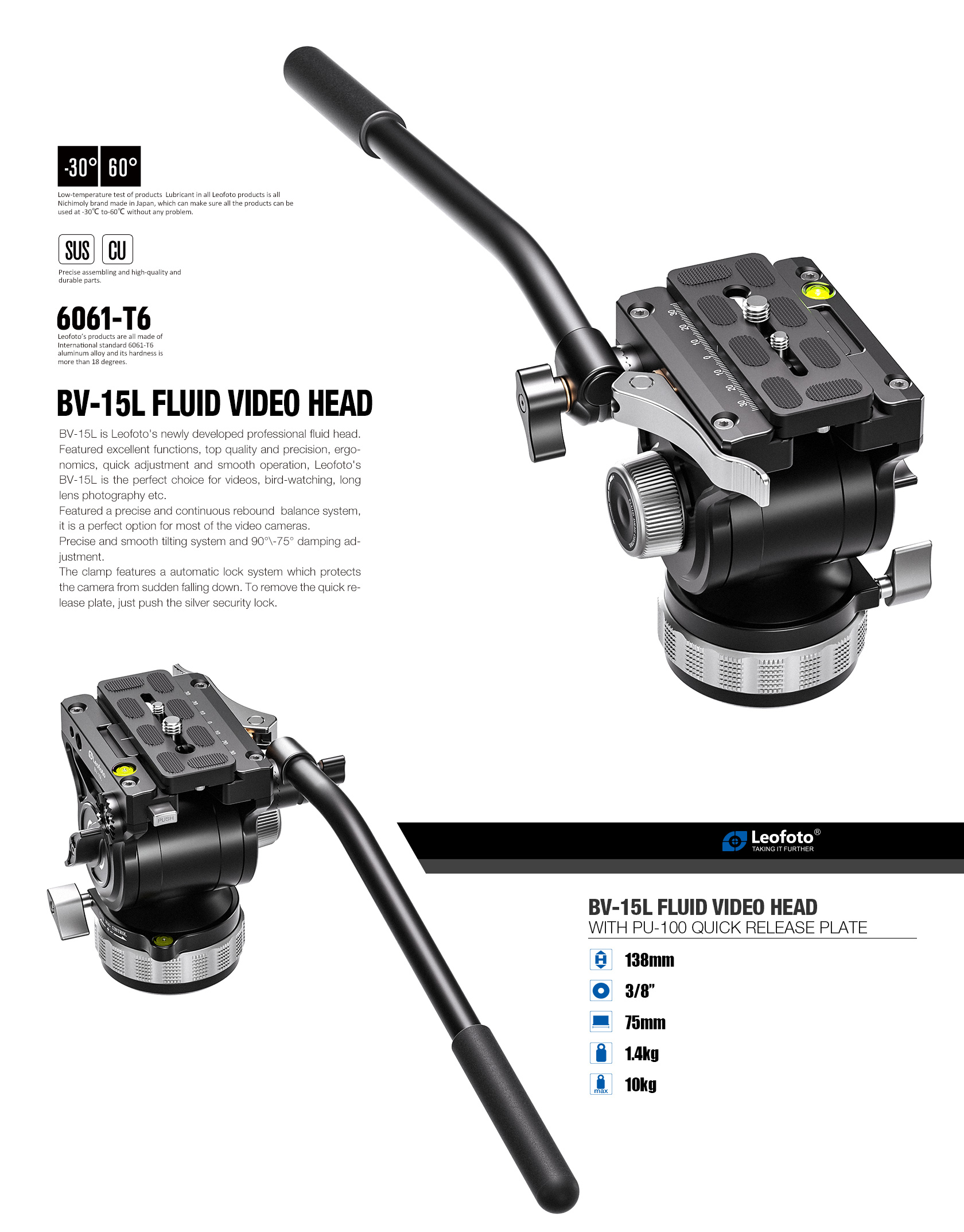 Leofoto BV-15L (Lever-Release Clamp) Fluid Video Head