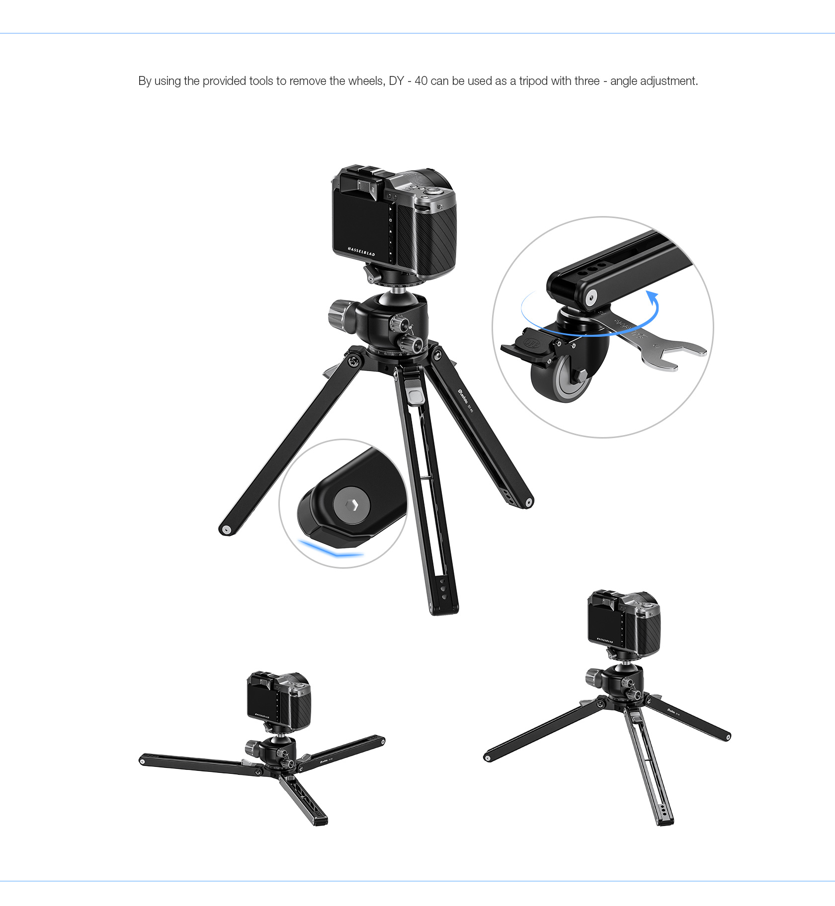 The Leofoto DY-40 Monopod Dolly is a compact rolling base specifically designed for monopods, providing smooth movement and added stability for video and photography setups. It is ideal for studio and indoor use where controlled, fluid motion is required.