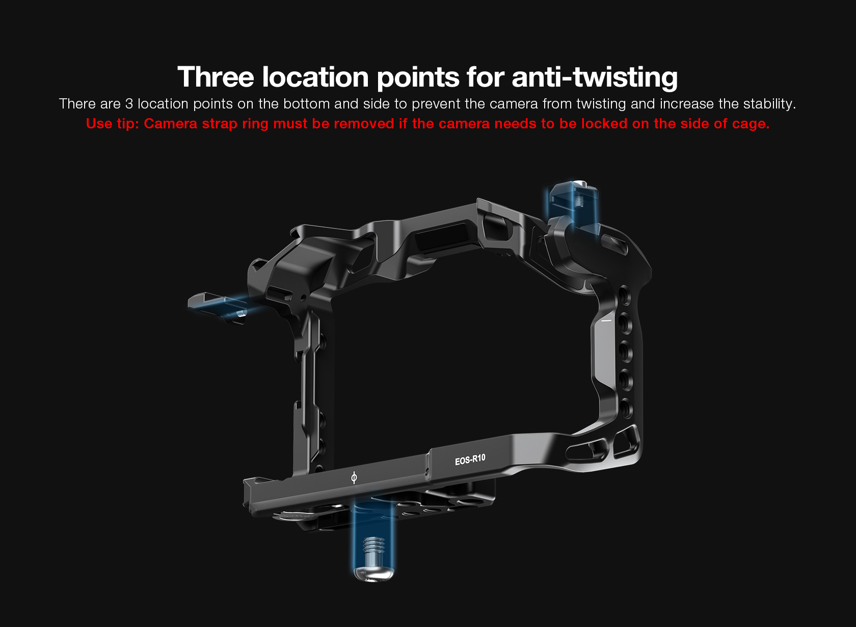 Protect your Canon EOS-R10 from the rigors of the production day while also providing multiple accessory mounting points that won’t stress your camera’s body with this form-fitting  Leofoto EOS-R10 Custom Cage for Canon EOS-R10 Camera. The cage features one cold shoe mount on top of the cage and one on the side, as well as multiple 1/4″-20 and 3/8″-16 threaded accessory-mounting holes. The 3/8″-16 threaded holes feature anti-twist divots.