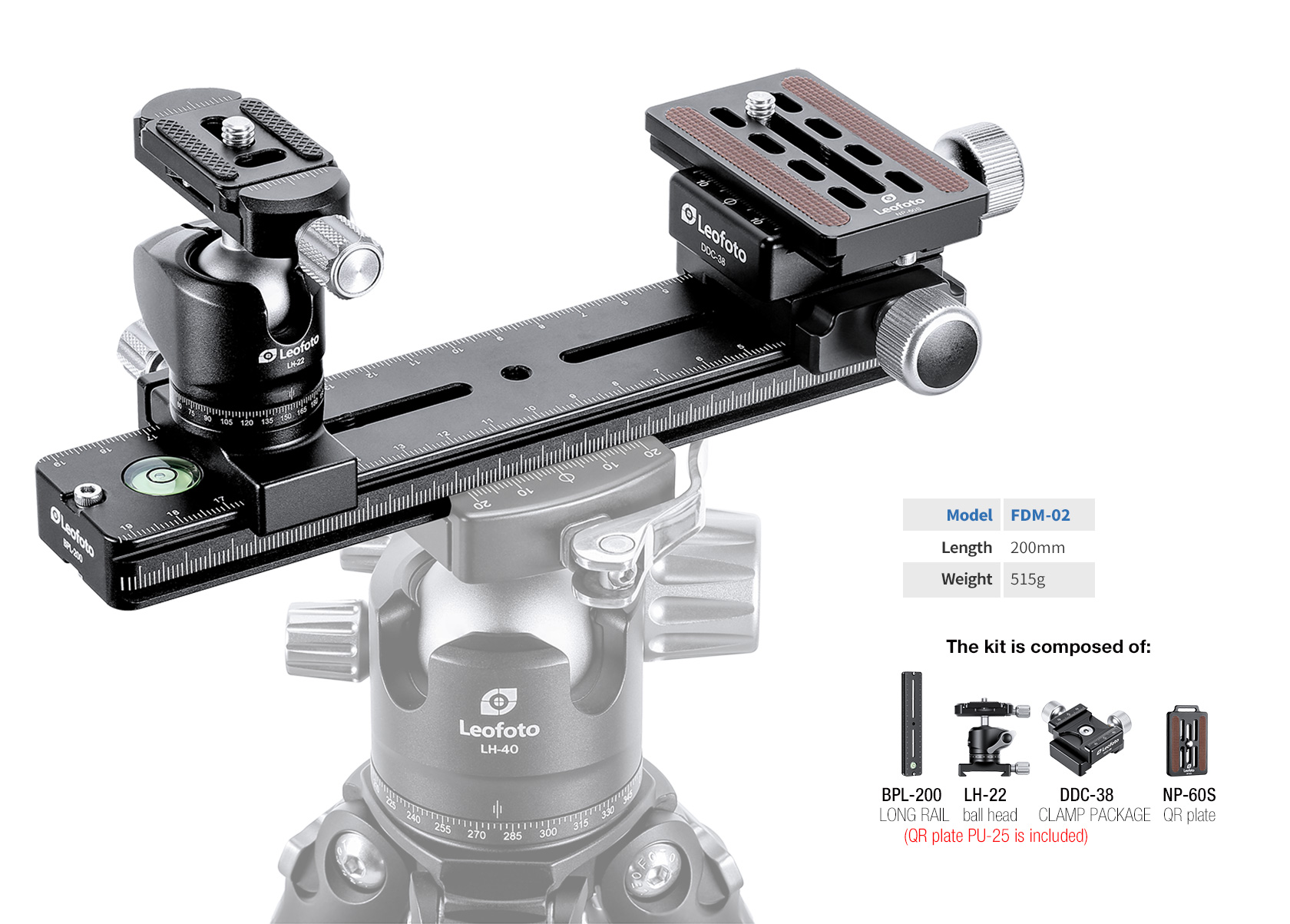 BPL-200 Double Arca Long Rail (200mm / 7.87in)This rail features an Arca profile on the bottom and top of the rail, which allows for multiple mounting options at any position. The bottom profile enables the rail to be moved to any position in an Arca clamp, accommodating a variety of installed equipment. A large top-mounted bubble level allows for quick and easy leveling of the rail for level panning and accurate measurements.
