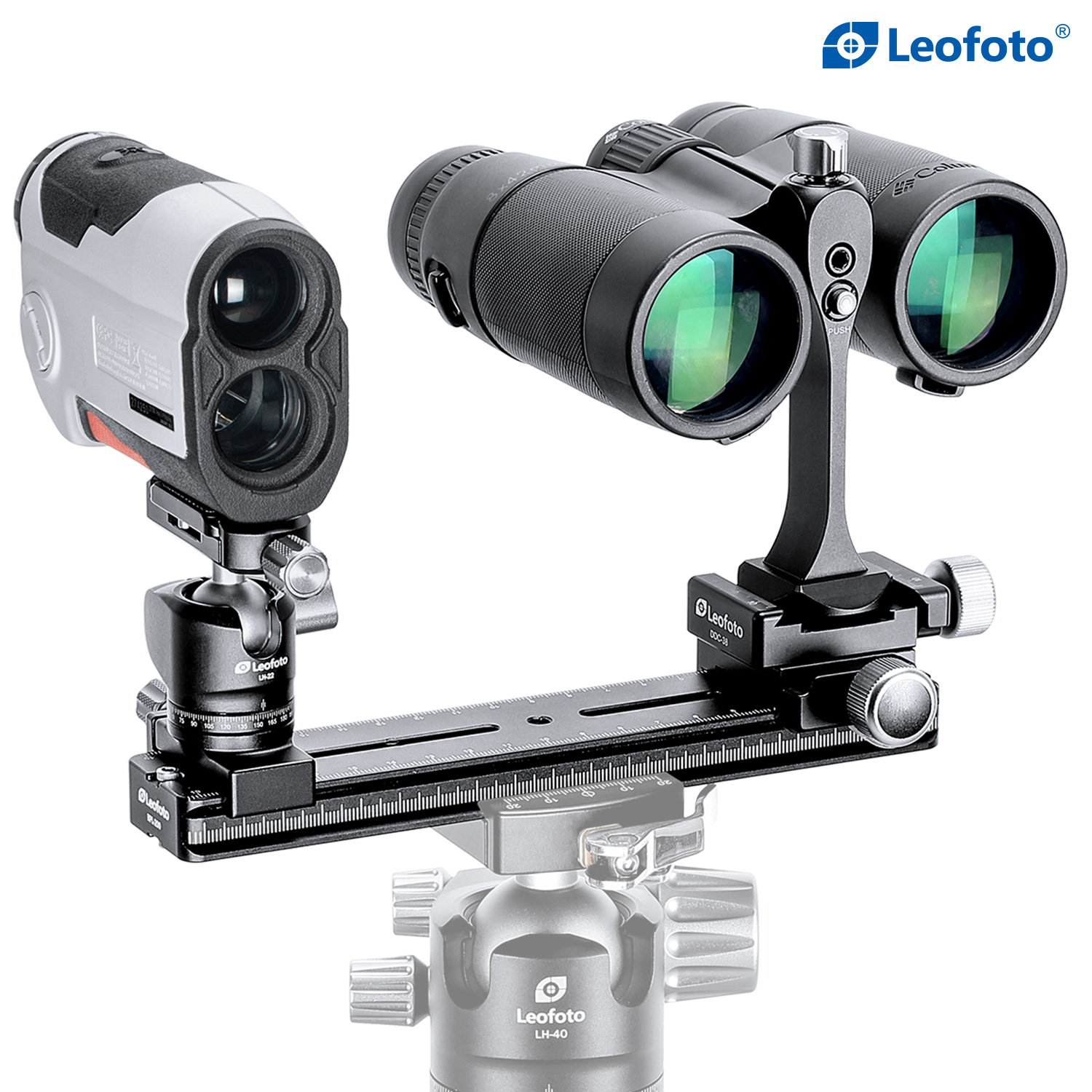 The LH-22 Ball Head with Arca Clamp is a versatile and adjustable accessory that is designed to securely hold your spotting scope or camera. With its ability to independently maneuver one of the installed items, it is perfect for tracking moving targets. Please note that this is not a standard LH-22, as it is permanently attached to an Arca clamp, which allows for easy attachment to the rail.