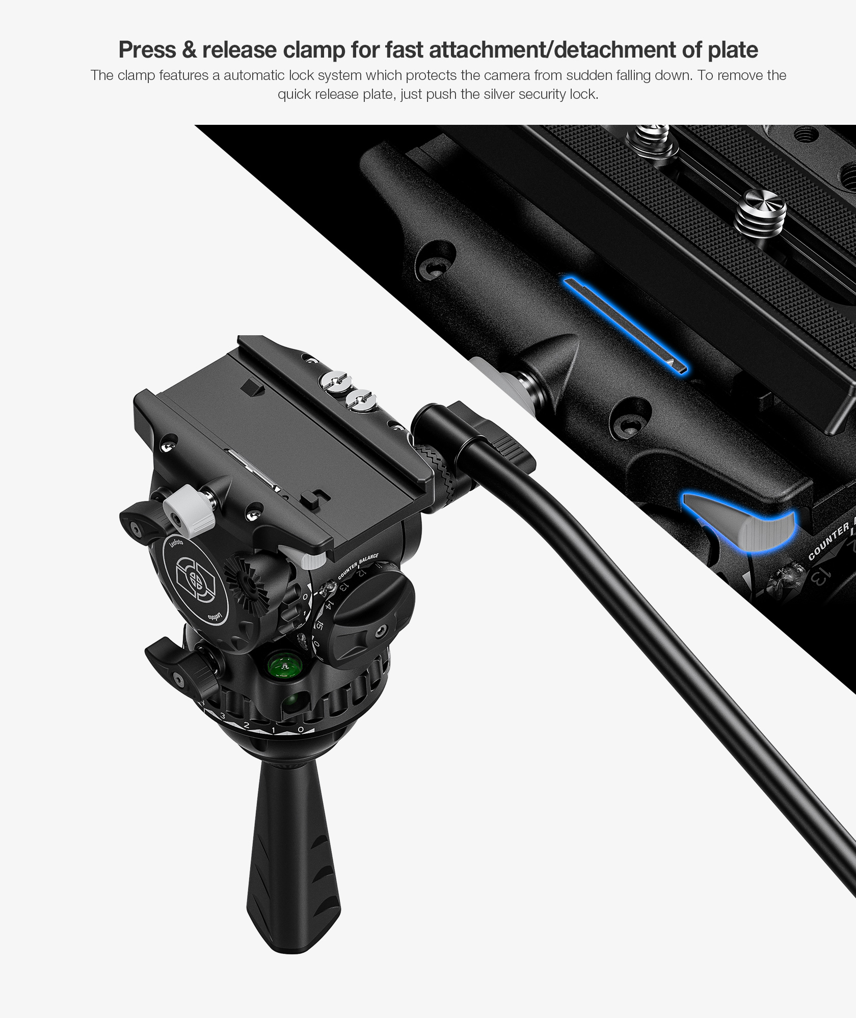 The FH-20M’s combination of precision engineering, flexible adjustment, and high-quality construction makes it an outstanding choice for cinematographers seeking professional fluid head performance. Its Arca-Swiss-compatible camera plate and extensive drag options allow for precise control over every pan and tilt movement, ensuring smooth, cinematic shots.
