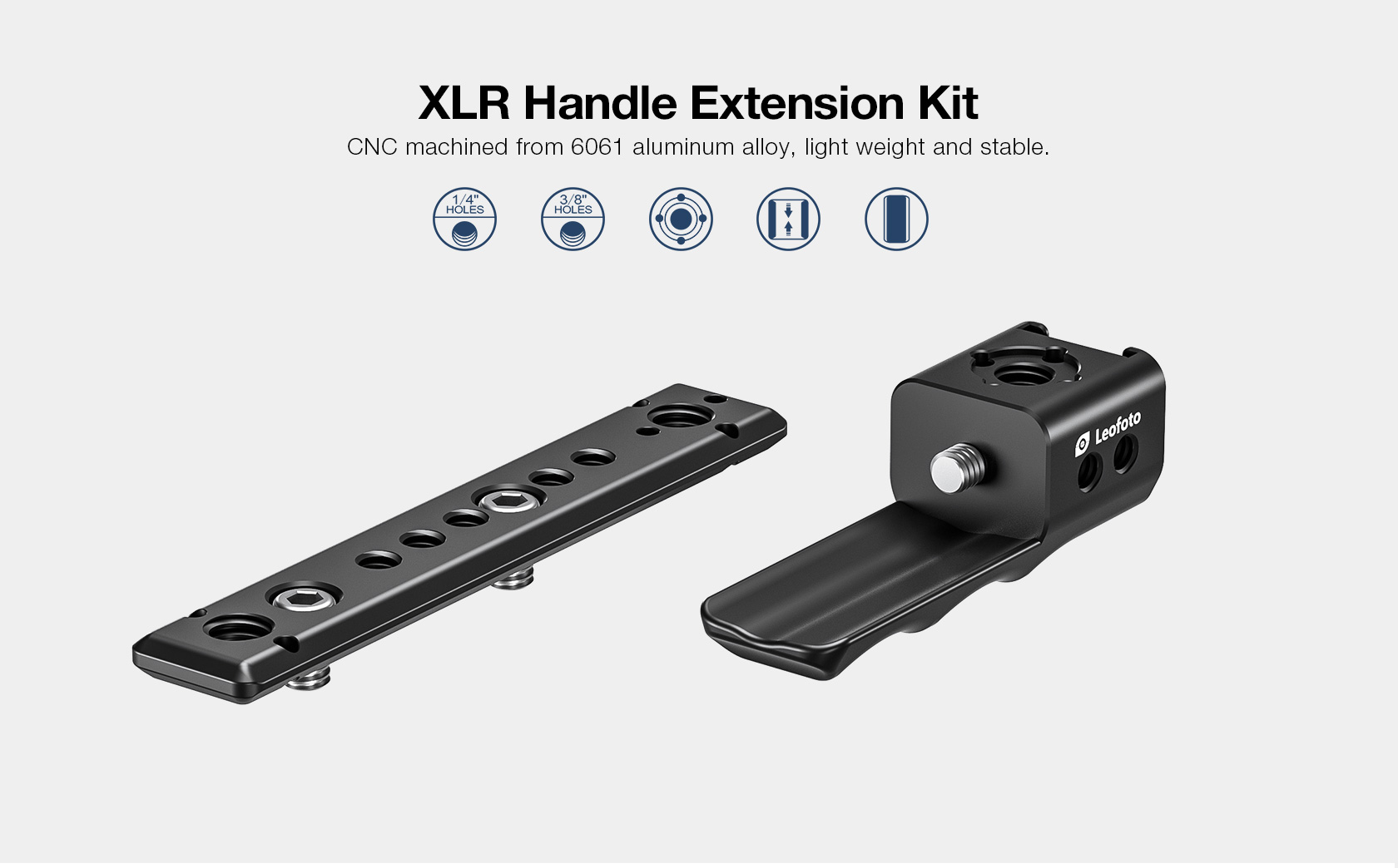 The Leofoto FX3-XLR is an extension for the SONY FX3 XLR handle. There is a top rail to secure the extension in place with various accessory mounting holes. The rail uses two 3/8″ mounting screws to mount directly to the original top handle, while the extension uses one 3/8″ mounting screw to mount to the back of the top handle. This extension allows for a longer grip length as well as ergonomic finger shaped grooves for added comfort while handling the camera.