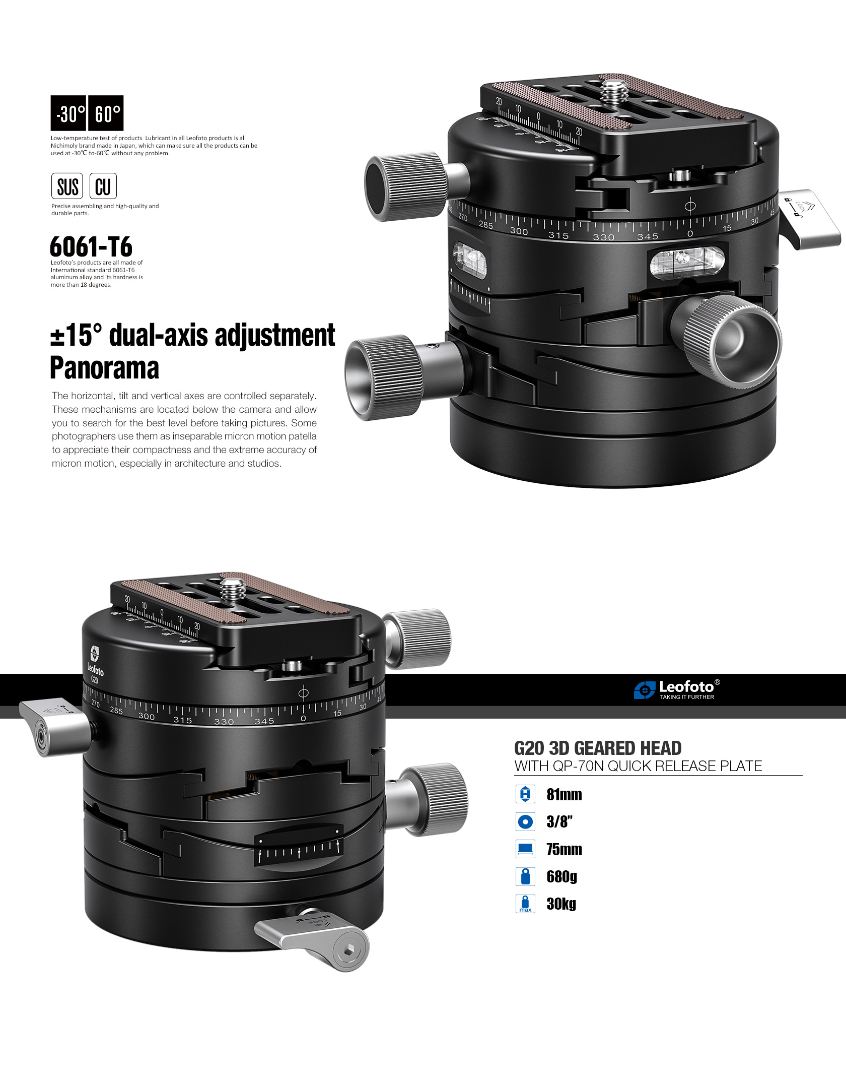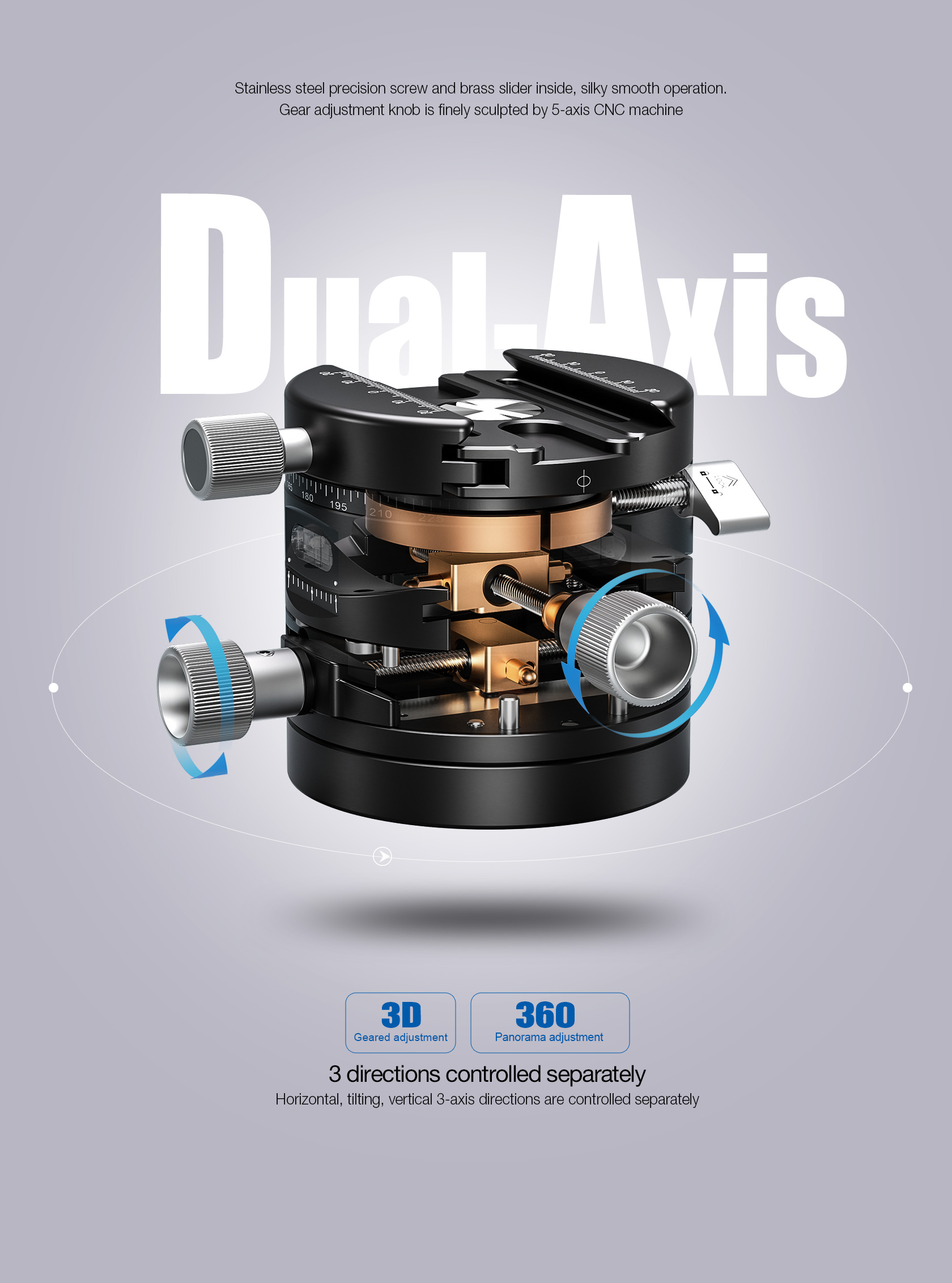 The innovative design of geared heads by Leofoto ensures that the pivot points of the x-axis and y-axis coincide perfectly. This concept minimizes the rotation radius,allowing for precise small adjustments with minimal scale deviations. While such deviations historically helped control depth of field in digital photography, they often require careful correction.