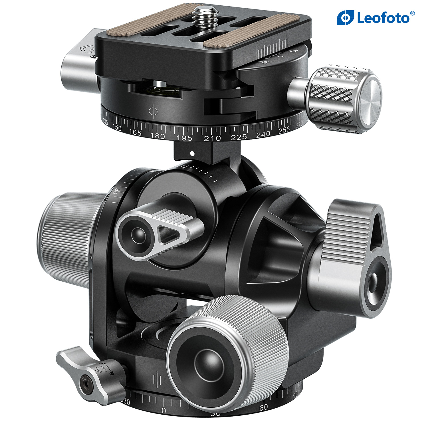 Another notable feature is the separate 360° panning on the base of the head. The bottom section allows for camera alignment. Two spirit levels, arranged at 90° angles underneath the upper panorama adjustment, are sufficiently visible to facilitate effective leveling, even from a low viewpoint.
