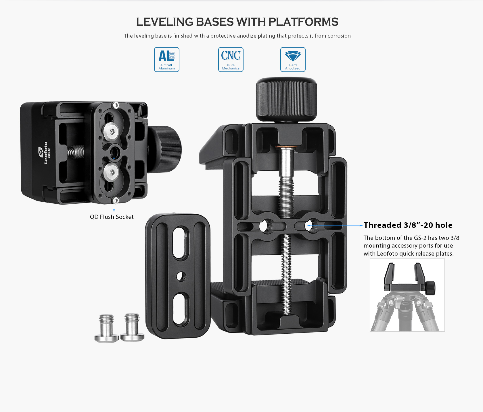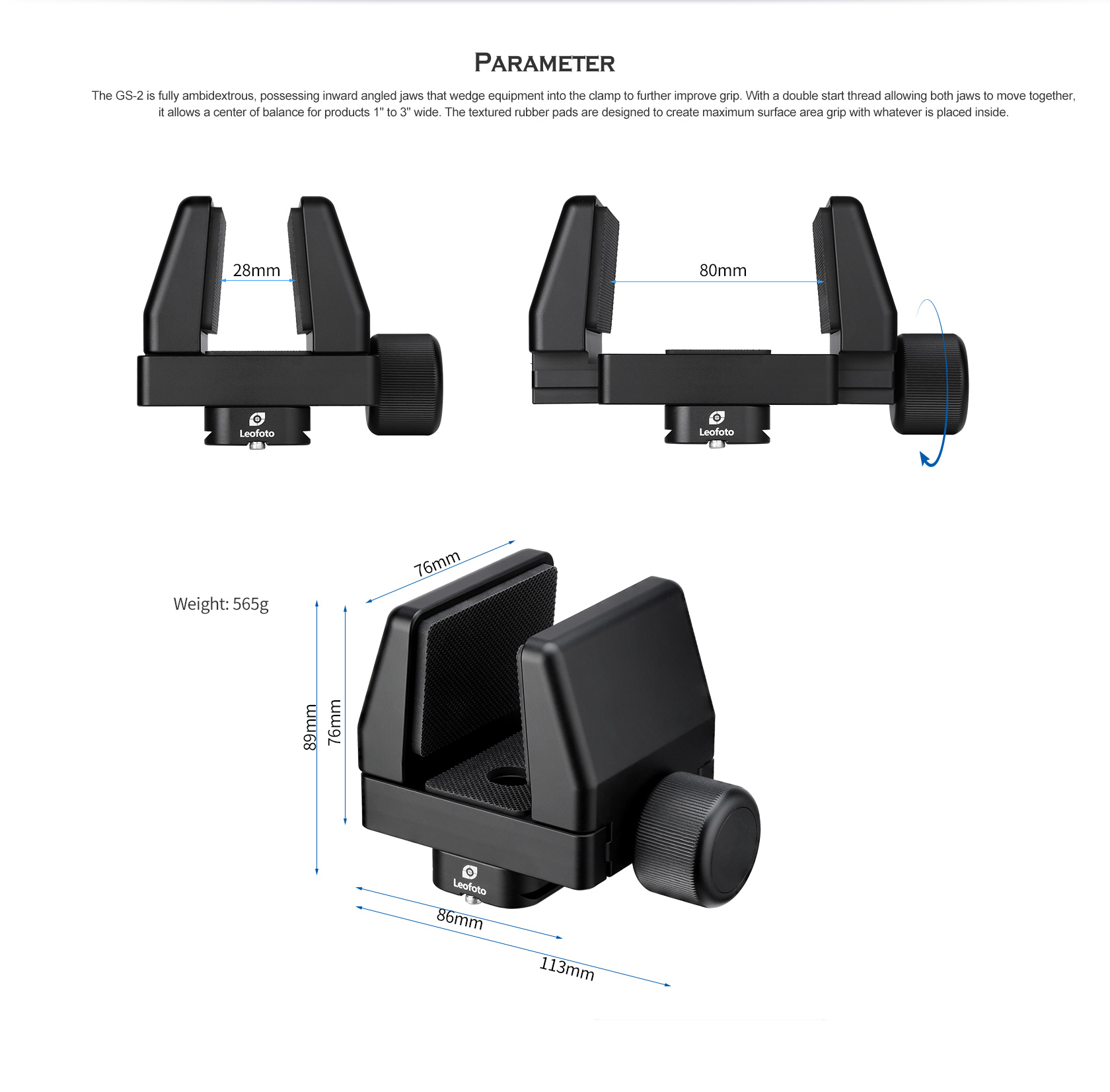 Leofoto GS-2 Lightweight Clamp Mount | Arca Compatible + 3/8″