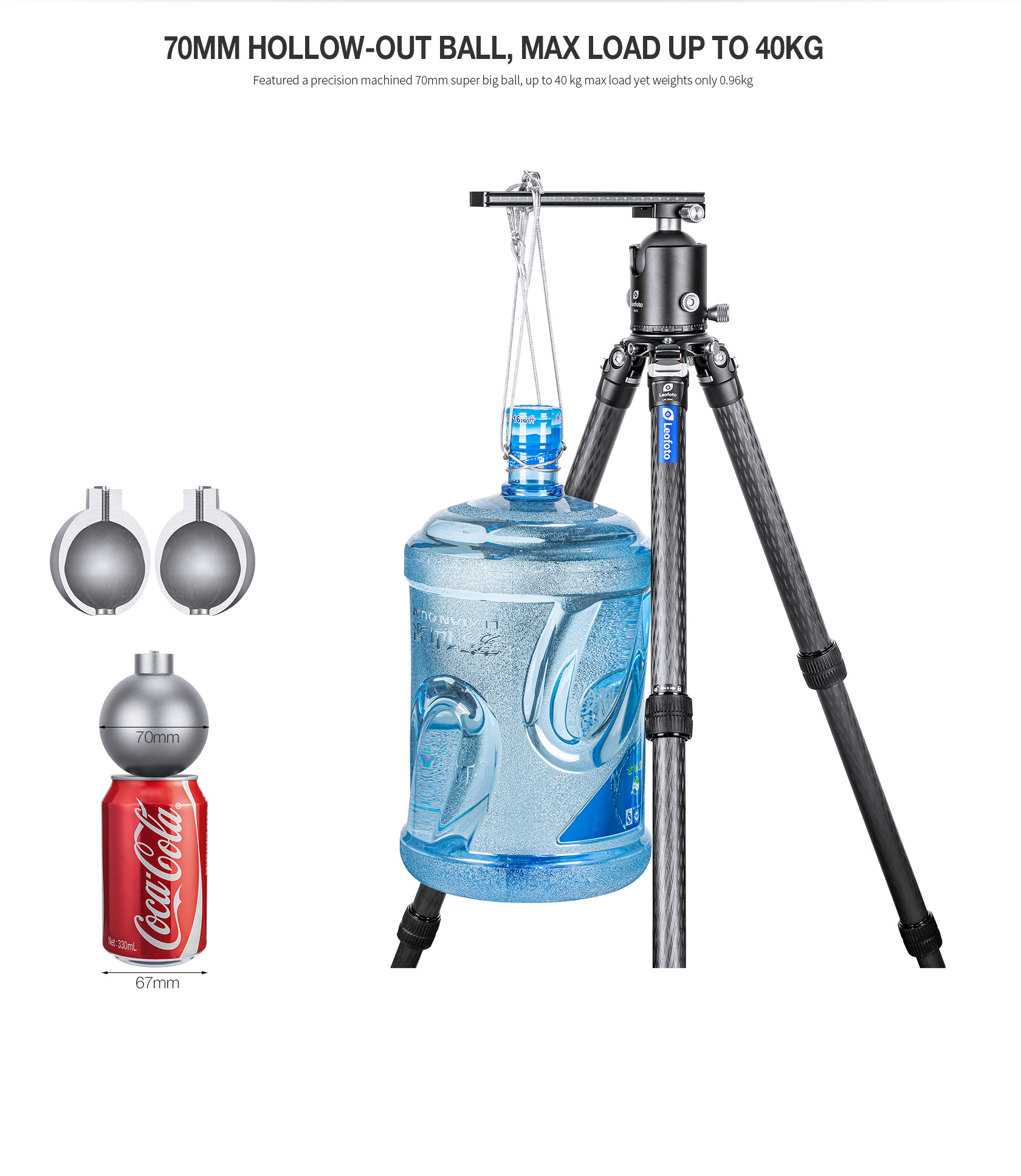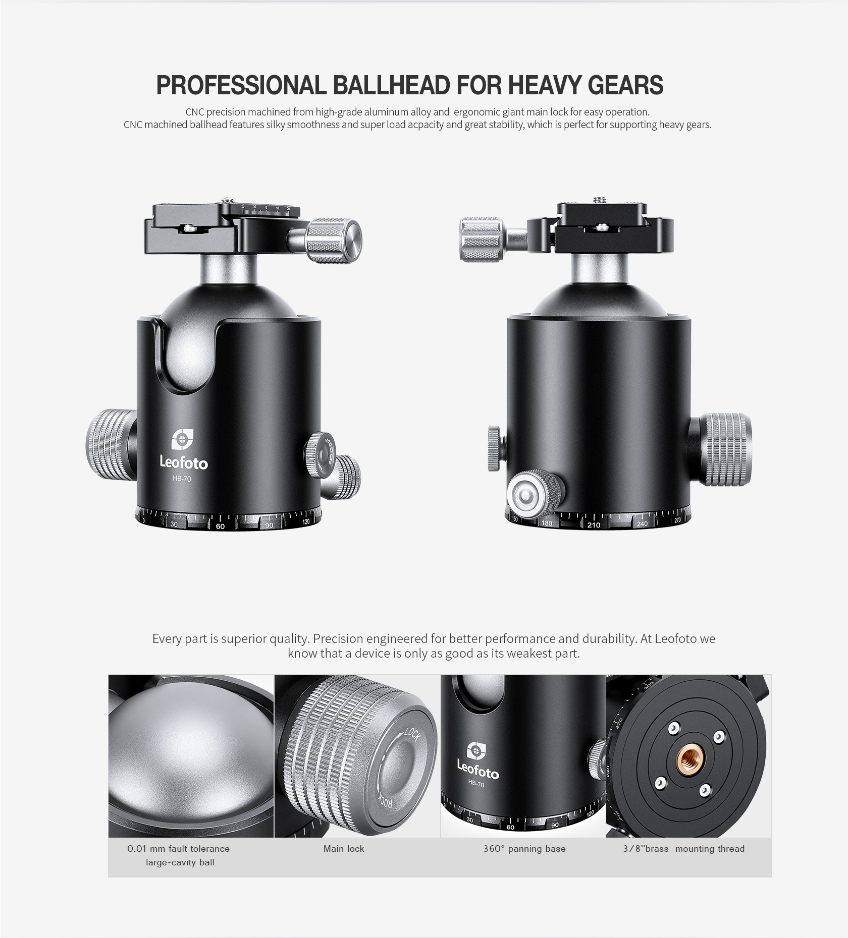 Leofoto HB-70 70mm Pro Heavy-Duty Ball Head with Quick Release Plate & Case | Max Load 88lb – HB-70