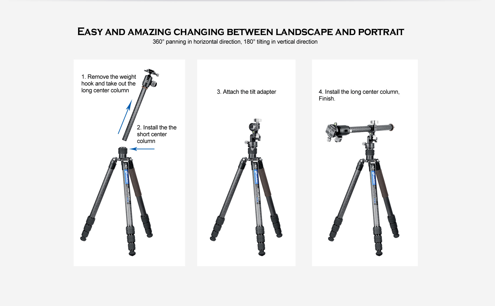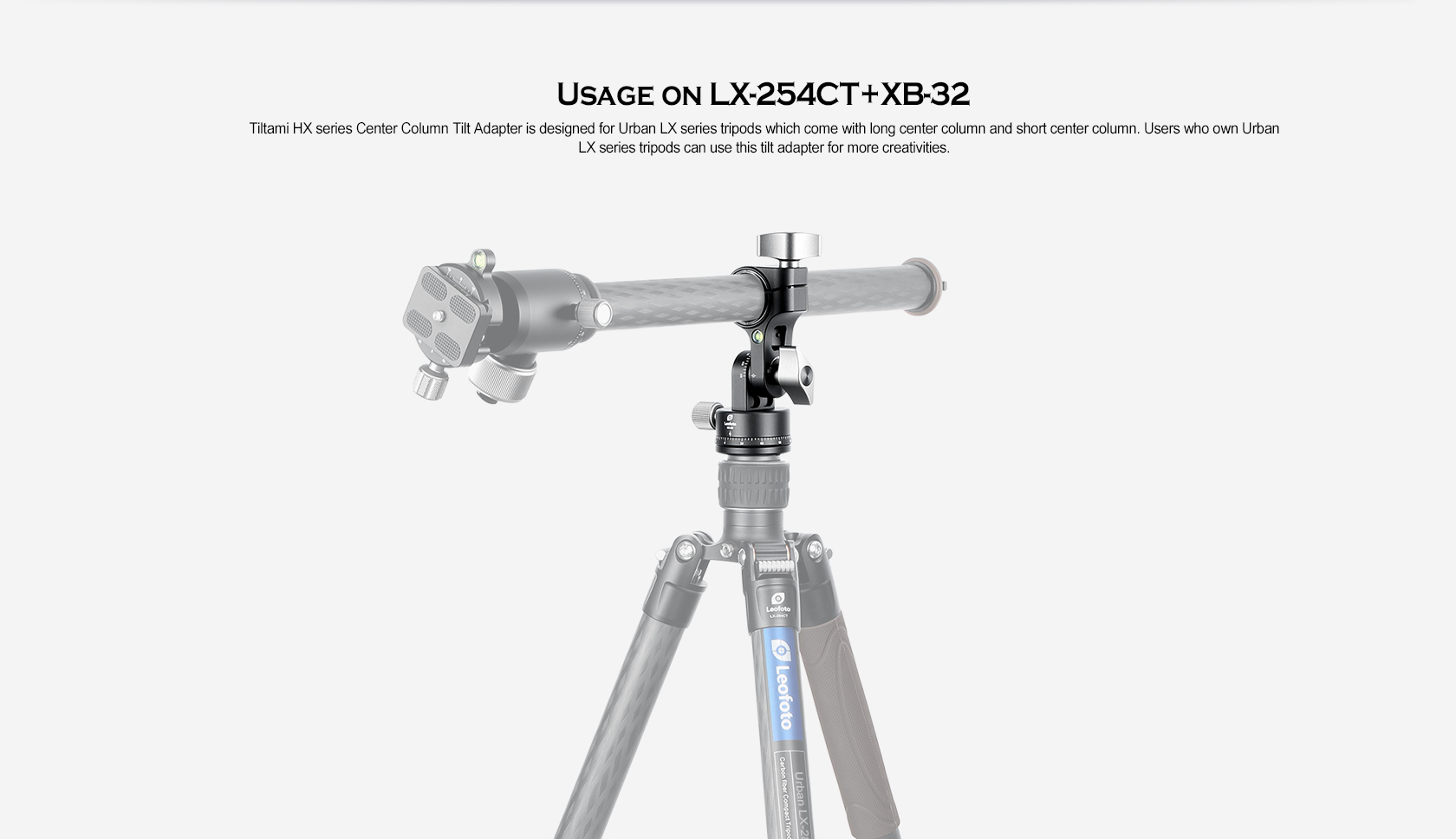 *Only compatible with Leofoto LX series tripod center columns, not other center columns. For standard ones, please see the HS series Center Column Tilt Adapter.