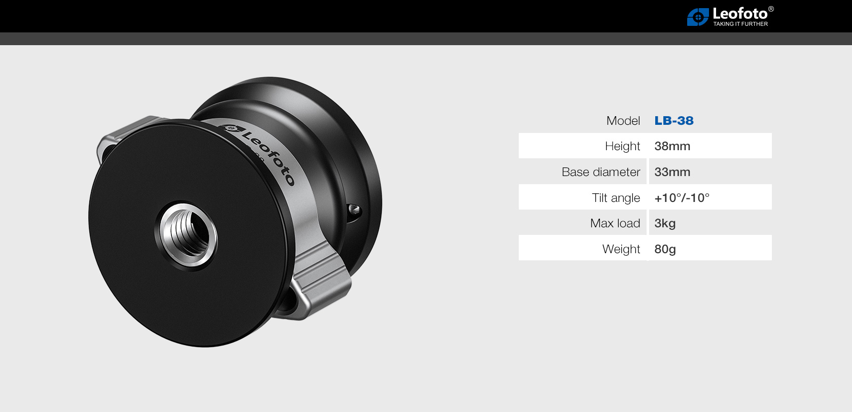 The Leofoto LB Series Leveling Base with Butterfly Handle acts like a half ball, with the LB-38 mini providing a leveling range of +/-10°, while the other models in the series offer a range of +/-15°. It locks easily and securely in position with a twist of the large butterfly handle at the base of the ball. This leveling base installs on any tripod with a 3/8″ mounting stud.
