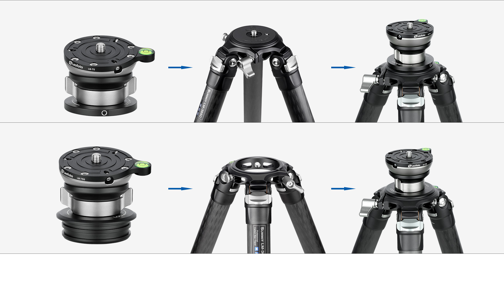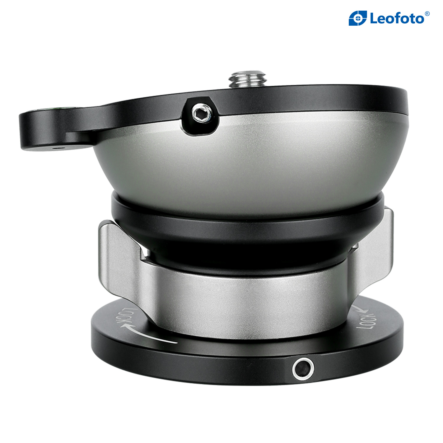The Leofoto LB Series Leveling Base with Butterfly Handle acts like a half ball, with the LB-38 mini providing a leveling range of +/-10°, while the other models in the series offer a range of +/-15°. It locks easily and securely in position with a twist of the large butterfly handle at the base of the ball. This leveling base installs on any tripod with a 3/8″ mounting stud.