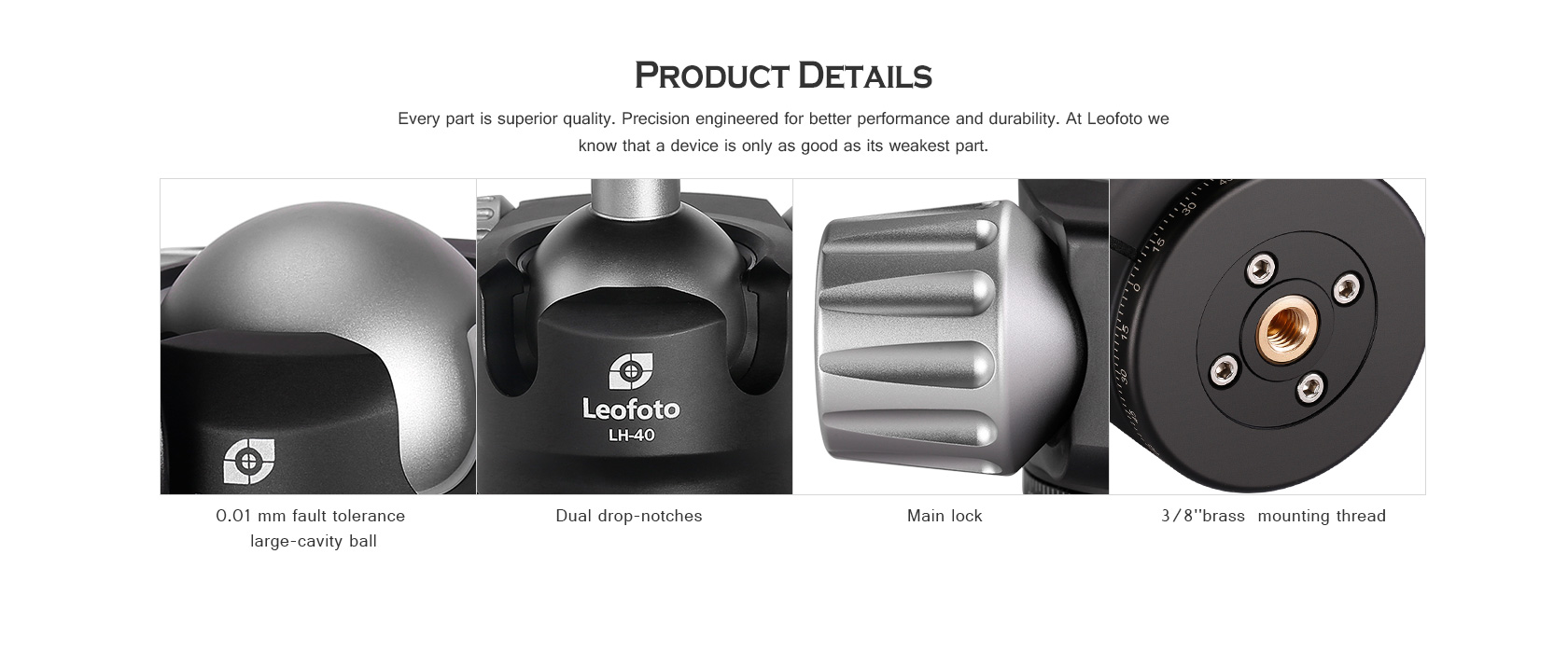 * Low profile keeps the camera closer to the tripod apex for more stability