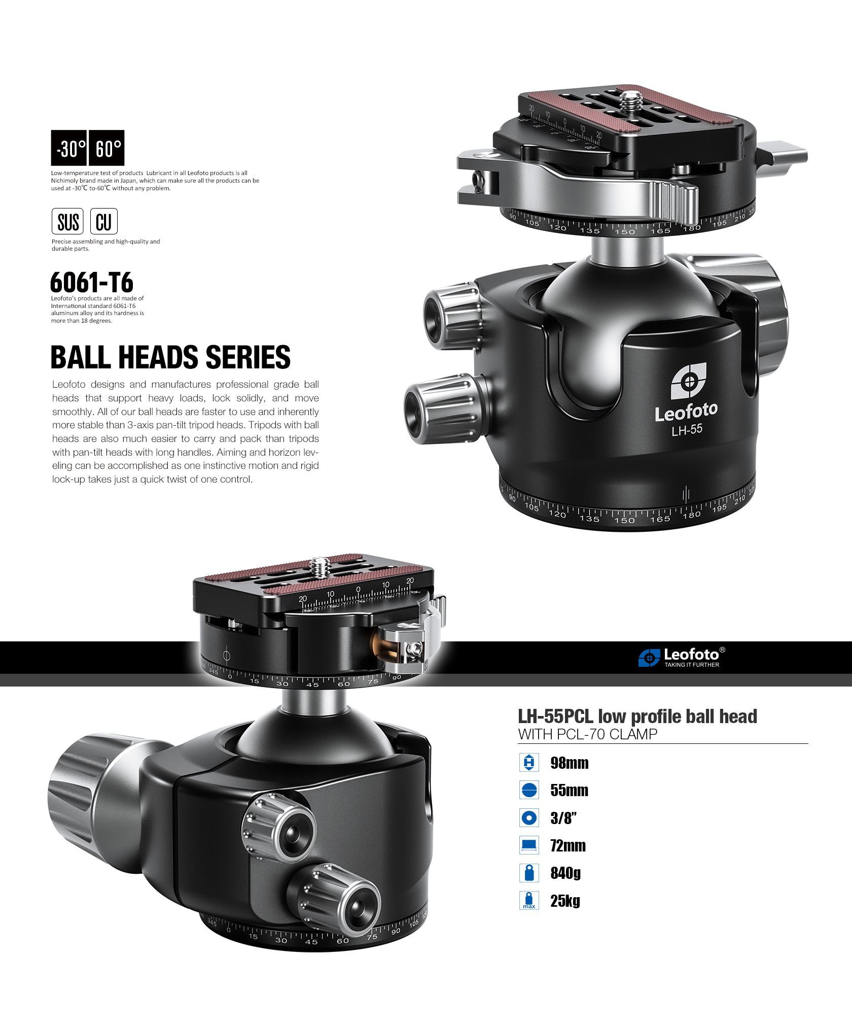 Leofoto LH-55PCL(WITH PCL-70 CLAMP) Professional ball head
