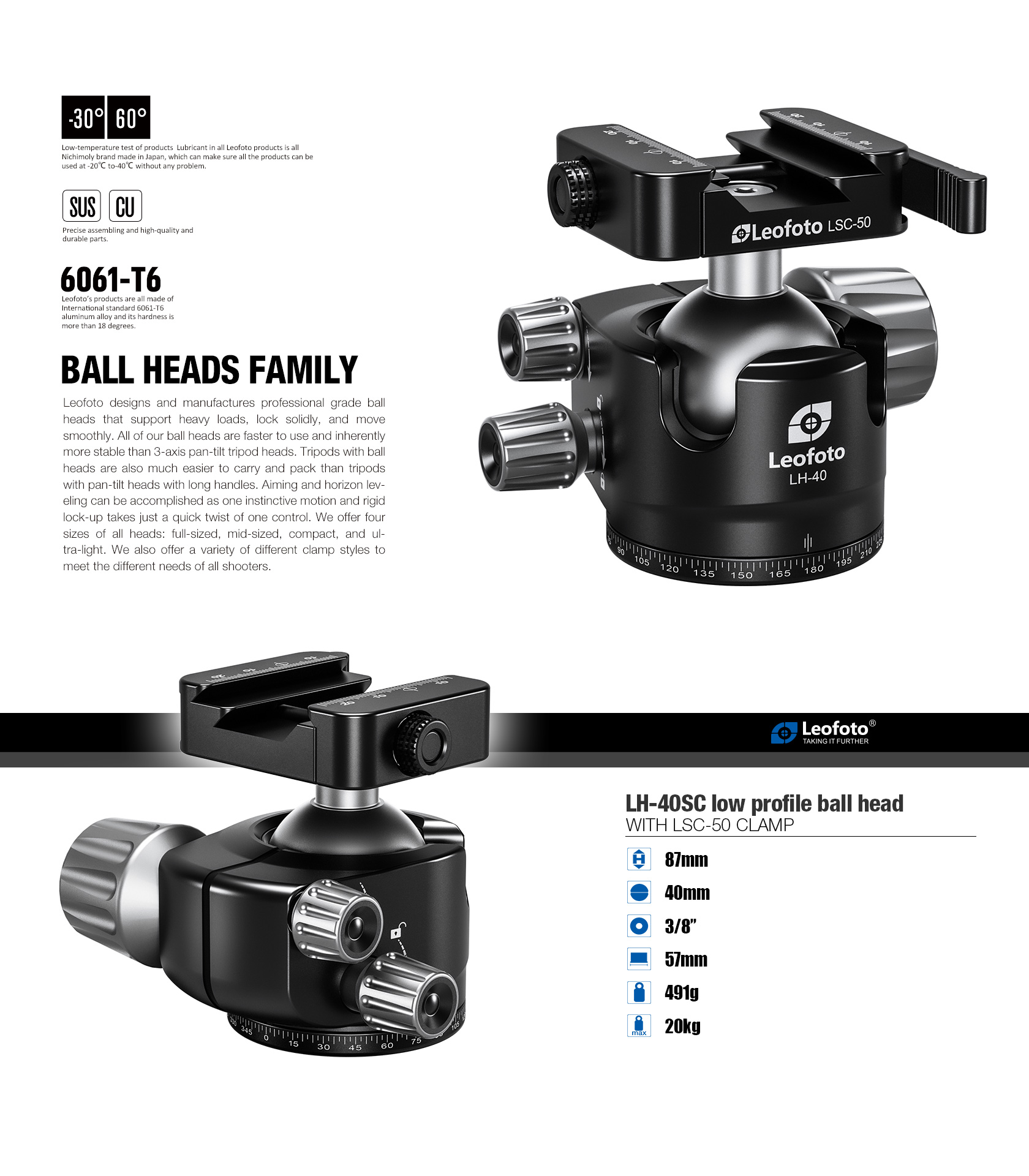 Leofoto LH-40SC Lever-Release Hybrid Clamp Ball Head for Shooting/Hunting
