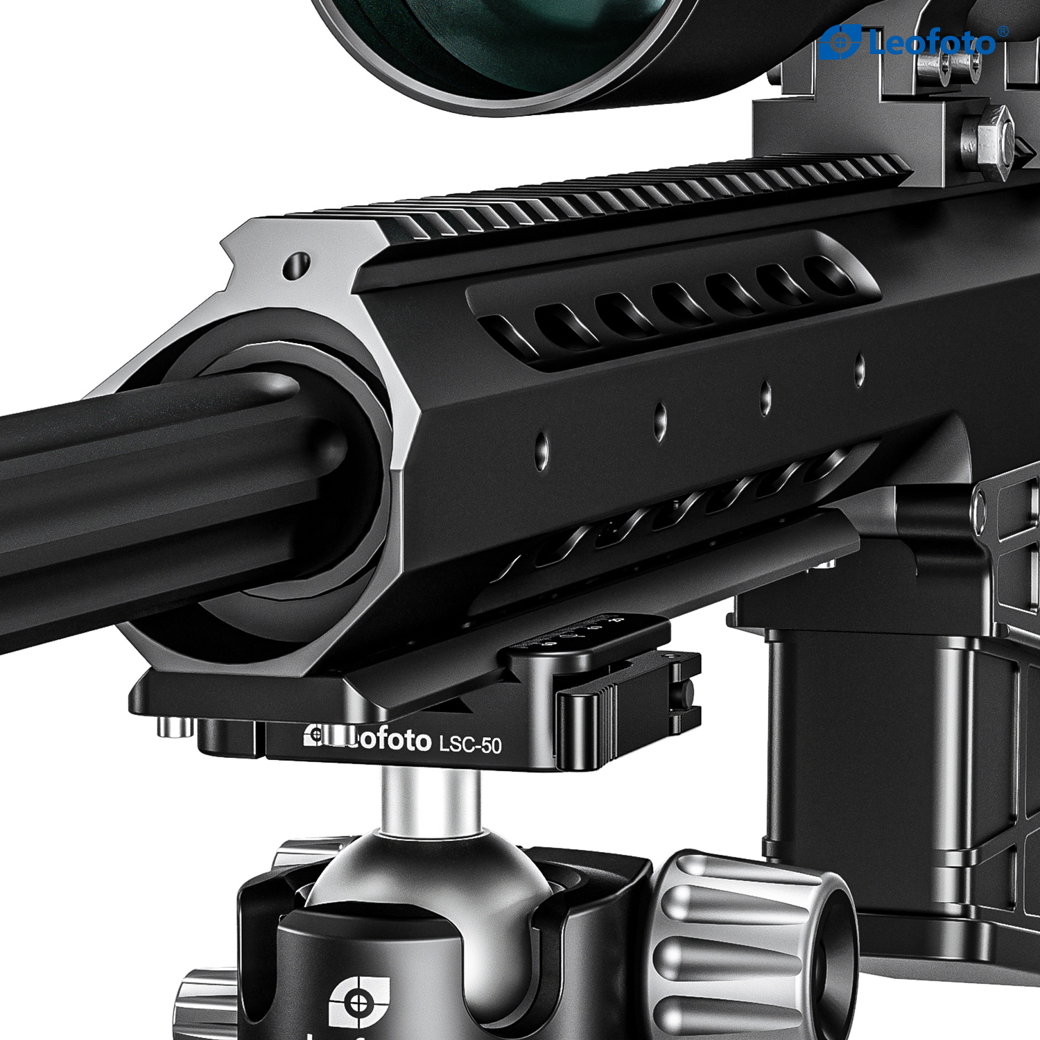 Crafted from high-grade aircraft aluminum and featuring a durable hard-anodized finish, the Leofoto LH-SC Ball Head Series for Shooting/Hunting is designed to meet the stringent demands of professional shooting and hunting. An over-sized, ergonomic locking knob allows 45-degree tilting in all directions and a 90-degree drop-notch facilitates quick and accurate switching from the horizontal to vertical orientation. A separate tension knob is provided to apply the appropriate pressure that safely corresponds to the weight of your firearm. A third knob loosens and locks the panning base which is laser-engraved with markers every 2.5 degrees from 0 to 360 degrees.