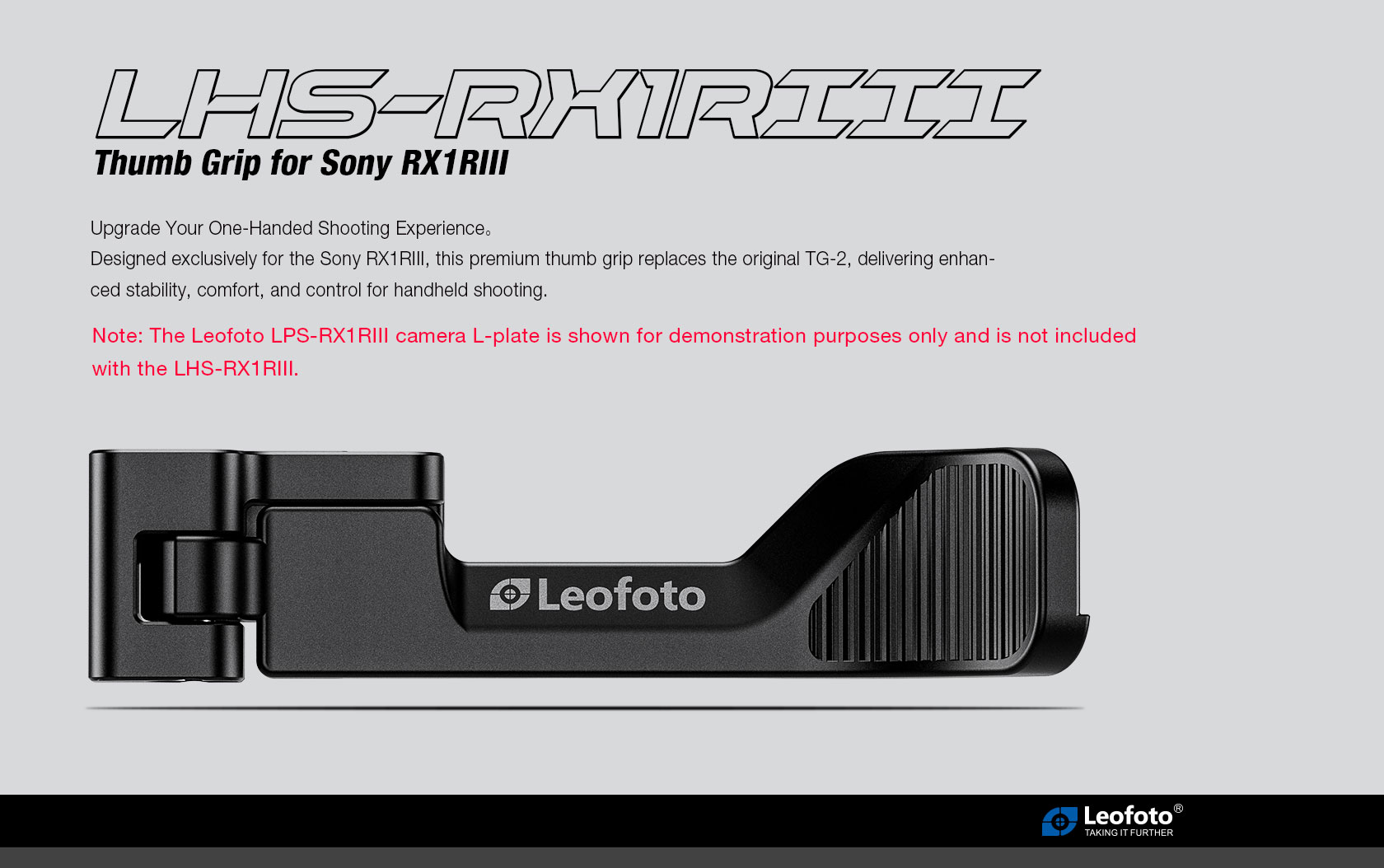 Designed exclusively for the Sony RX1RIII, this premium thumb grip replaces the original TG-2, delivering enhanced stability, comfort, and control for handheld shooting.