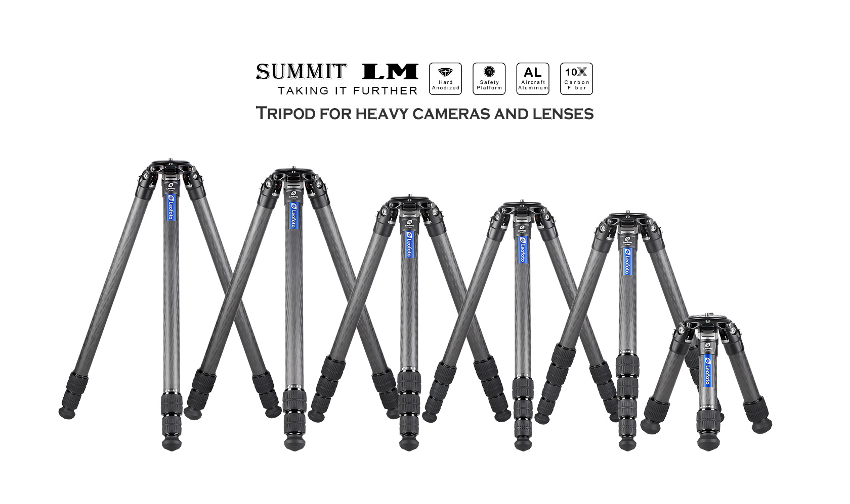 Reach for the top with the Leofoto LM Summit Series Carbon Fiber Tripod. The 2-section support has 10x carbon fiber tubes that make the tripod a lightweight support while maintaining a heavy max load capacity. The 6061 aluminum parts are CNC machined and hard anodized, creating a durable and scratch resistant surface. The twist leg lock system is quick, only requiring a quarter turn, which enables you to completely extend and collapse the tripod rapidly.