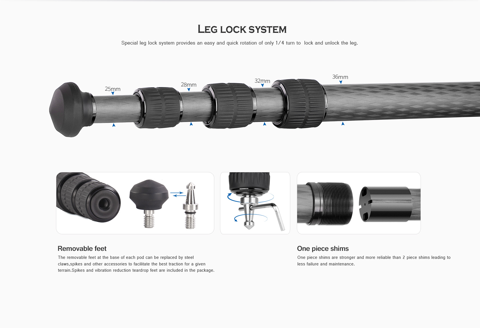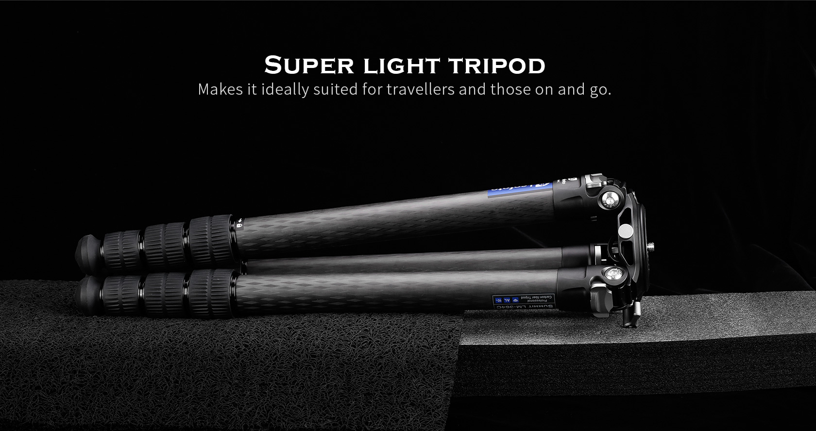 Reach for the top with the Leofoto LM Summit Series Carbon Fiber Tripod. The 4-section support has 10x carbon fiber tubes that make the tripod a lightweight support while maintaining a heavy max load capacity. The 6061 aluminum parts are CNC machined and hard anodized, creating a durable and scratch resistant surface. The twist leg lock system is quick, only requiring a quarter turn, which enables you to completely extend and collapse the tripod rapidly.