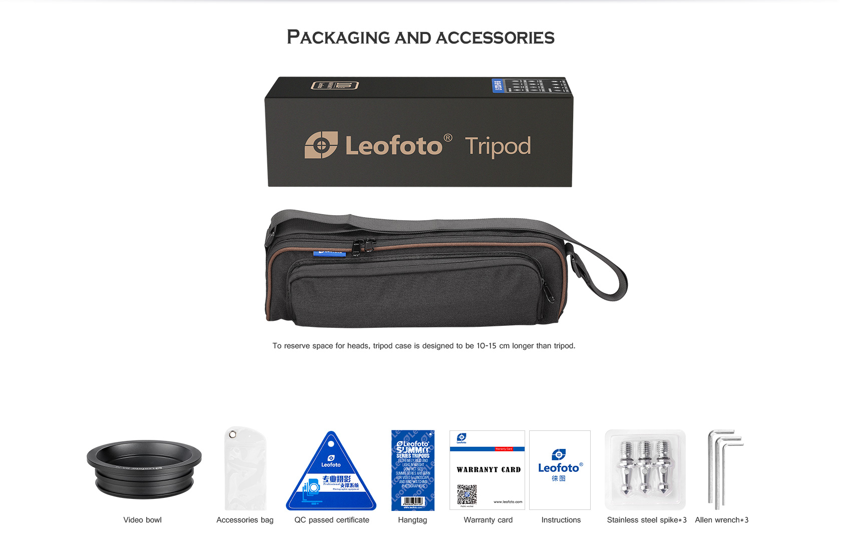 With the tripod’s three variable leg angle stops, it allows you to splay the legs completely out. At the tripod’s apex, the spider has been hollowed out, which adds to the relevance of the tripod’s light weight. Additionally, the mounting platform is removable, so it can be exchanged with the included 75mm video bowl to install a fluid head. An integrated 3/8″-16 socket is made available on the side of the spider for photo or video accessories. Leofoto tripods come with a carrying case to store or travel with the support system.