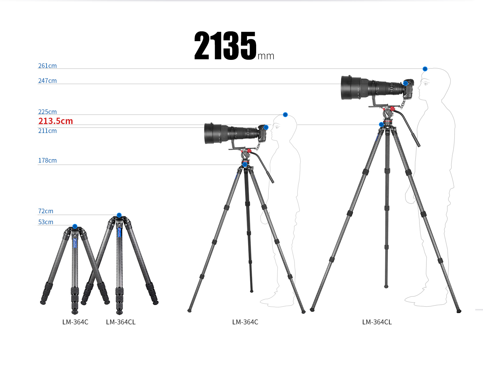 Reach for the top with the Leofoto LM Summit Series Carbon Fiber Tripod. The 4-section support has 10x carbon fiber tubes that make the tripod a lightweight support while maintaining a heavy max load capacity. The 6061 aluminum parts are CNC machined and hard anodized, creating a durable and scratch resistant surface. The twist leg lock system is quick, only requiring a quarter turn, which enables you to completely extend and collapse the tripod rapidly.
