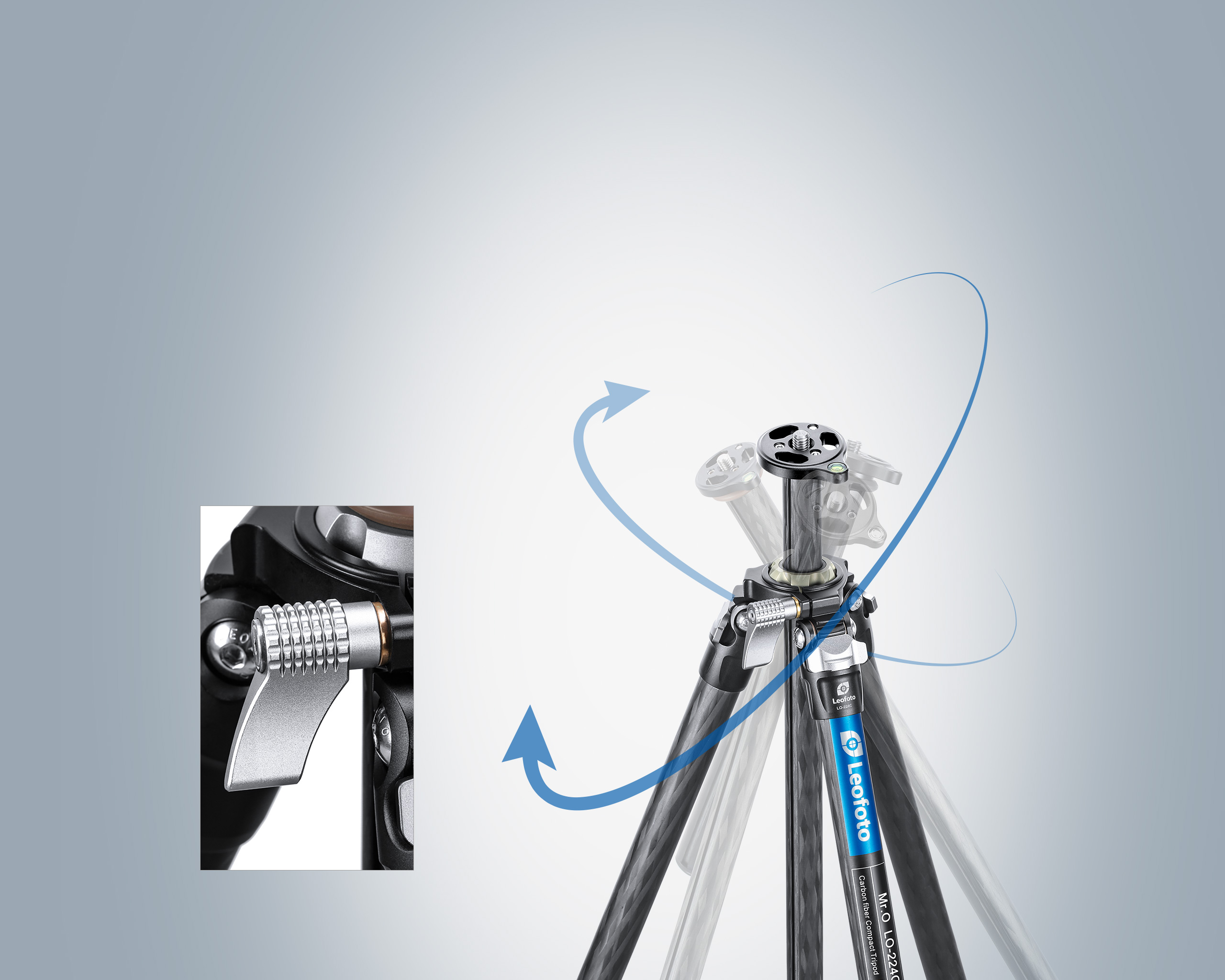 Mr. O’s spider is with a built-in hollow ball, which completely abandon the limitation of up-and-down straight center column and it can move and adjust the angle as freely as a ballhead.