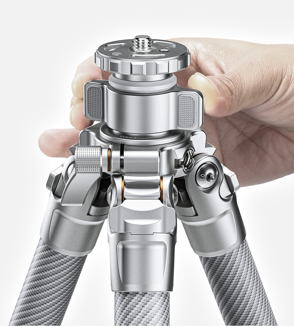 Hollow-out top plate design makes the tripod lighter and more flexible.