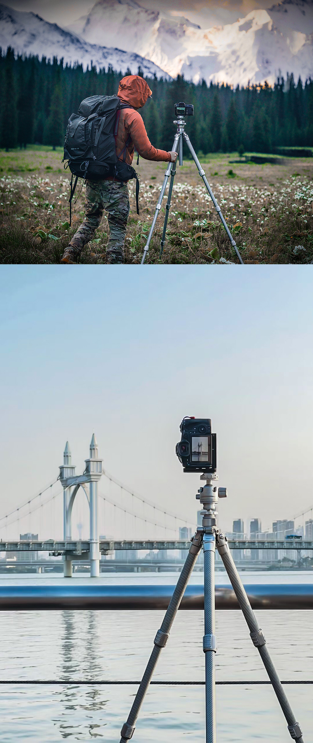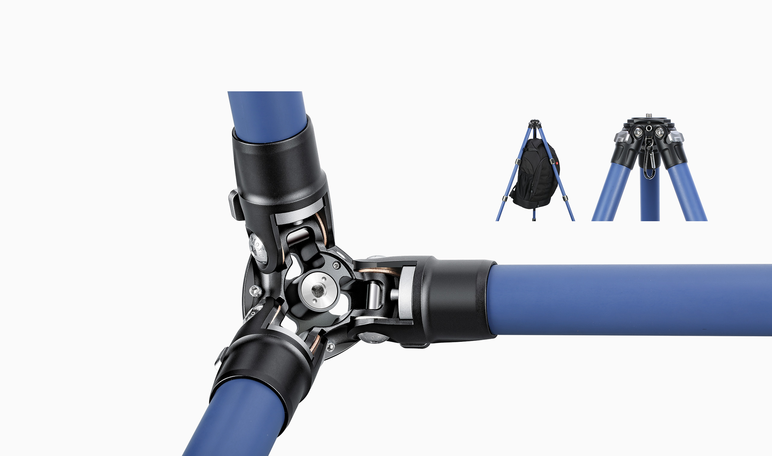 Classic blue carbon fiber tube, distinctive new lock system and 3D wave-shaped anti-spinning silca gel mats highlight the new style of modern photography.