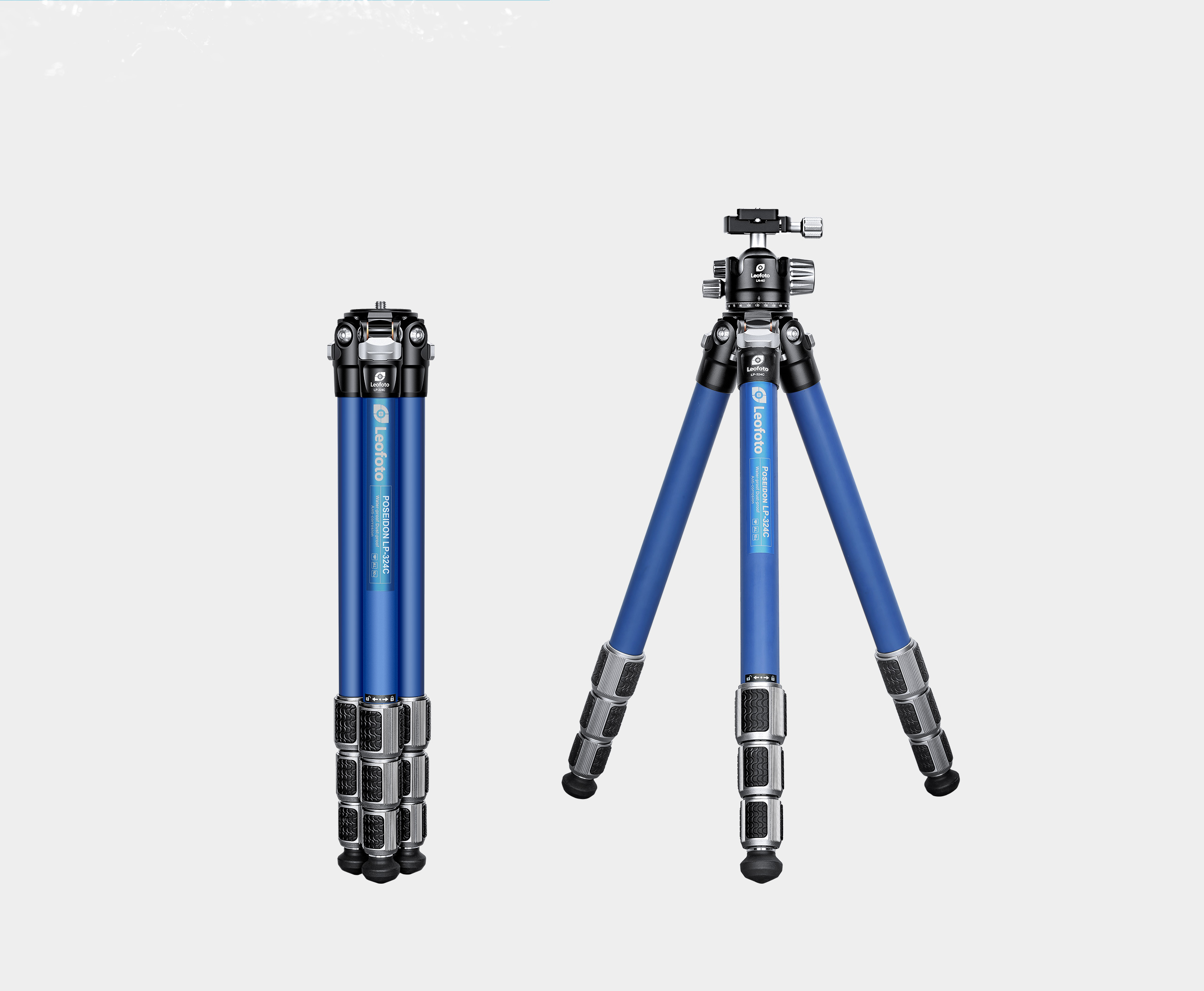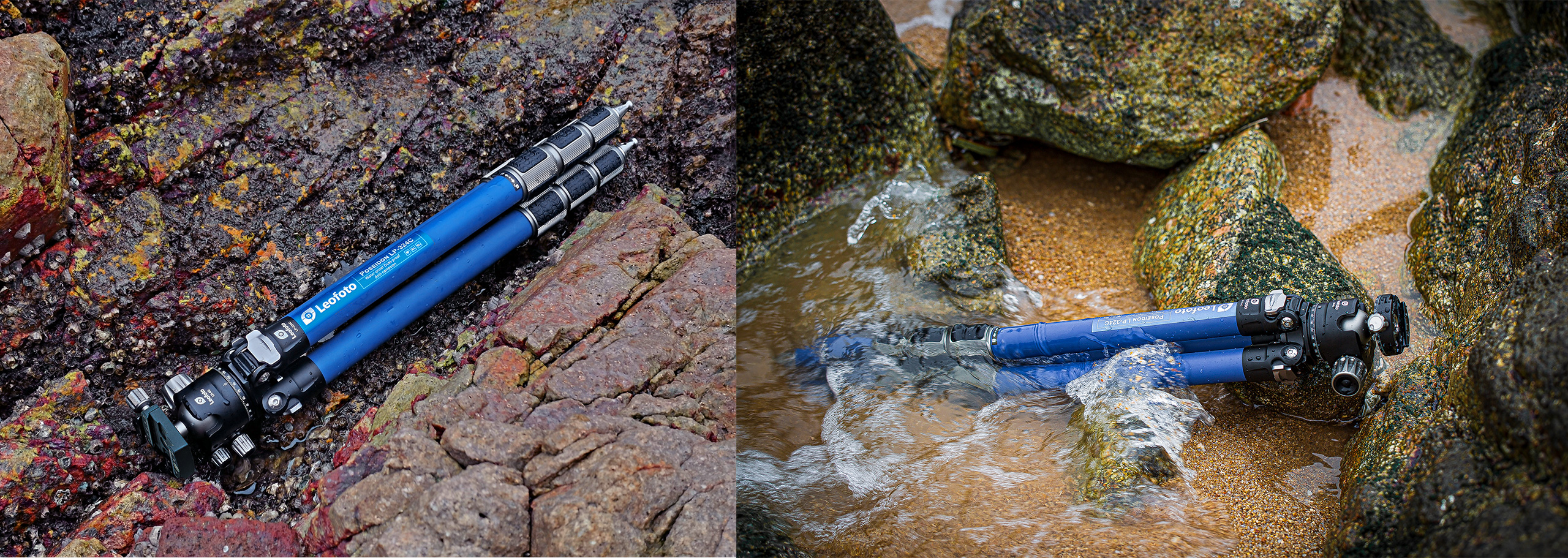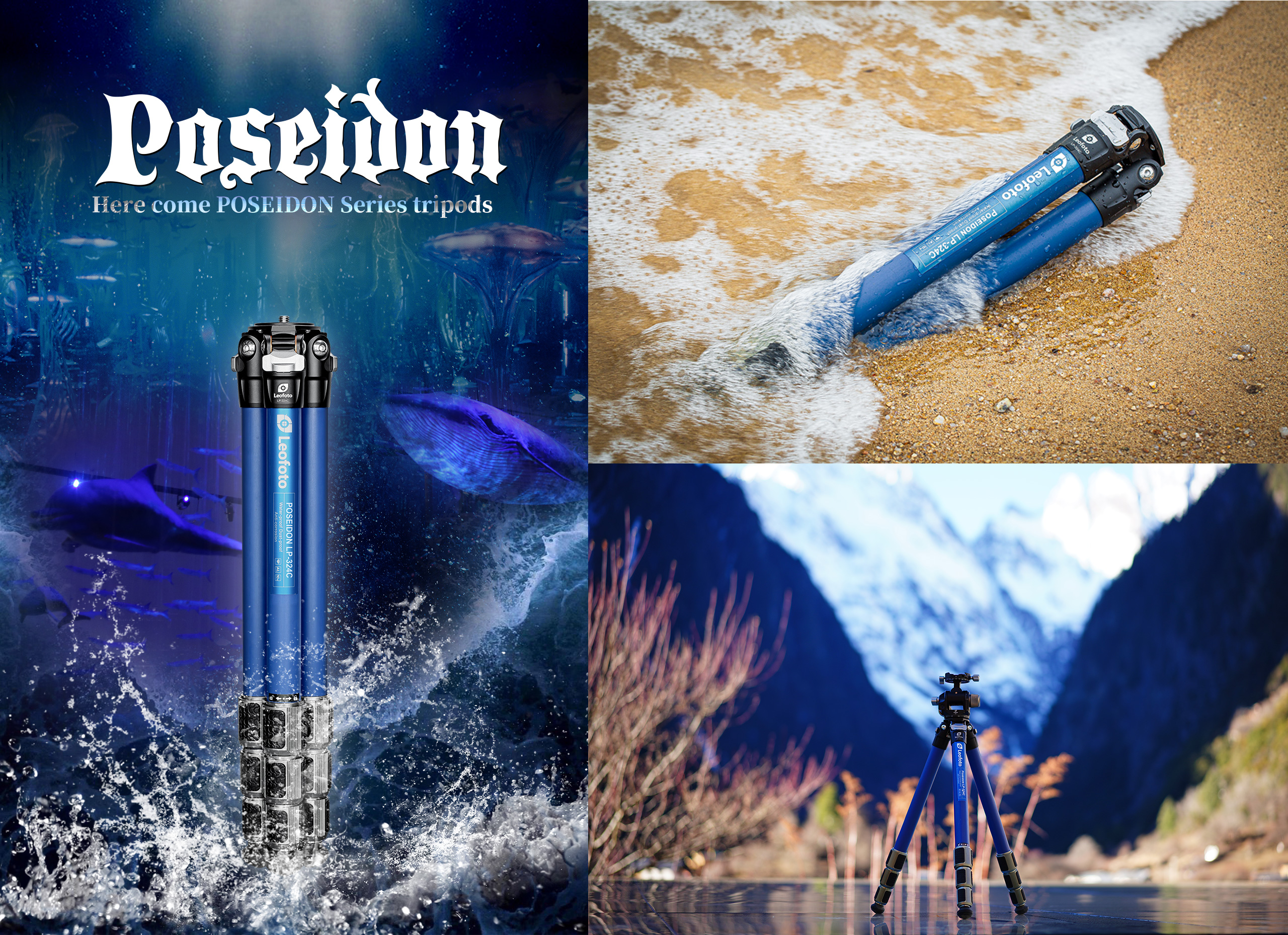 The Poseidon Ocean Tripod. It is designed for use in harsh, wet environments. Made with 10-layer carbon fiber leg tubes and titanium components, it provides excellent corrosion resistance and makes it suitable for use in a variety of conditions. The tripod also features twist-lock joints that repel water, sand, and debris, which helps to minimize the need for maintenance. The LP series tripod features a fixed, compact apex.