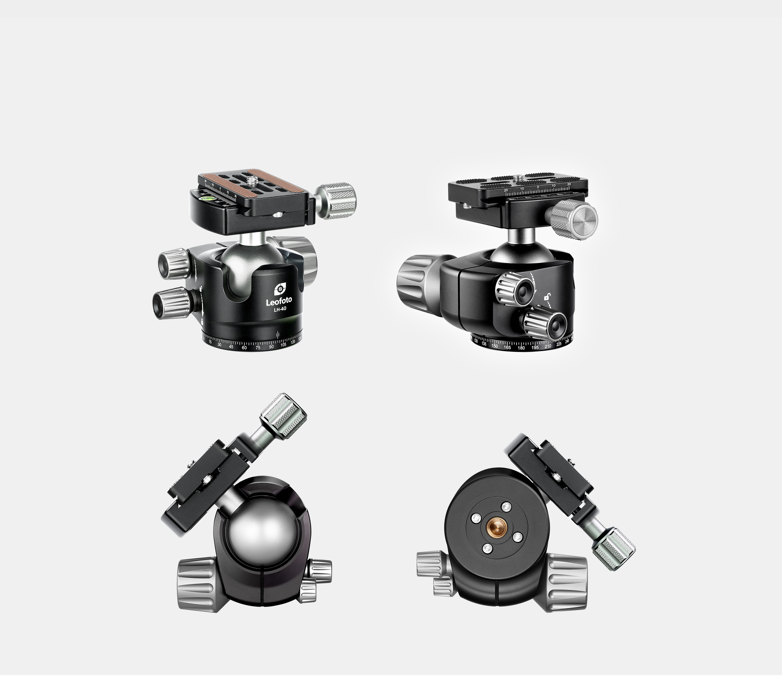 Ergonomic large main locking knob gives easy handling. Low height profile gives better reliability. Precisely machined ball makes the movement silky smooth. Dualdrop-nothes allow you easy change from landscape mode to portrait mode or other angle shots. Drag tension knob is with number for better control of the tension. Laser-engraved scale on the panning base for easy and precise control during panorama shooting.