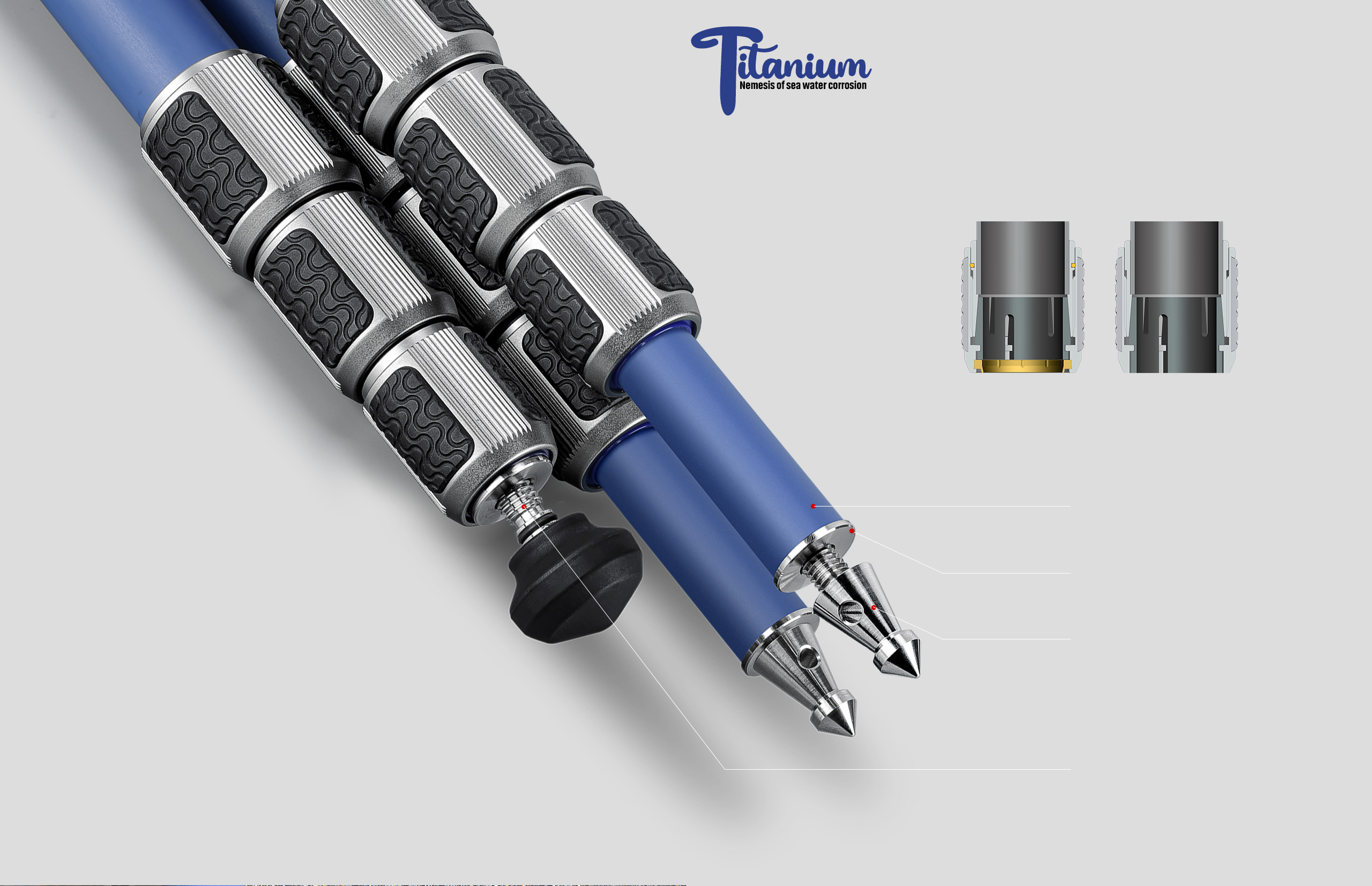 Sea water corrosion is regarded as a “metal eating tiger”. Most of the foot spikes and rubber feet screws on the market are made of stainless steel or aluminum alloy. When photographers shoot sea views, these parts are usually immersed in sea water, which will soon be corroded. Titanium alloy, which has the reputation of “underwater metal”, is the Nemesis of sea water corrosion. LG SERIES tripods’ foot spikes’ rubber feet screws and tube plugs are all made of titanium alloy for sea water corrosion resistant.