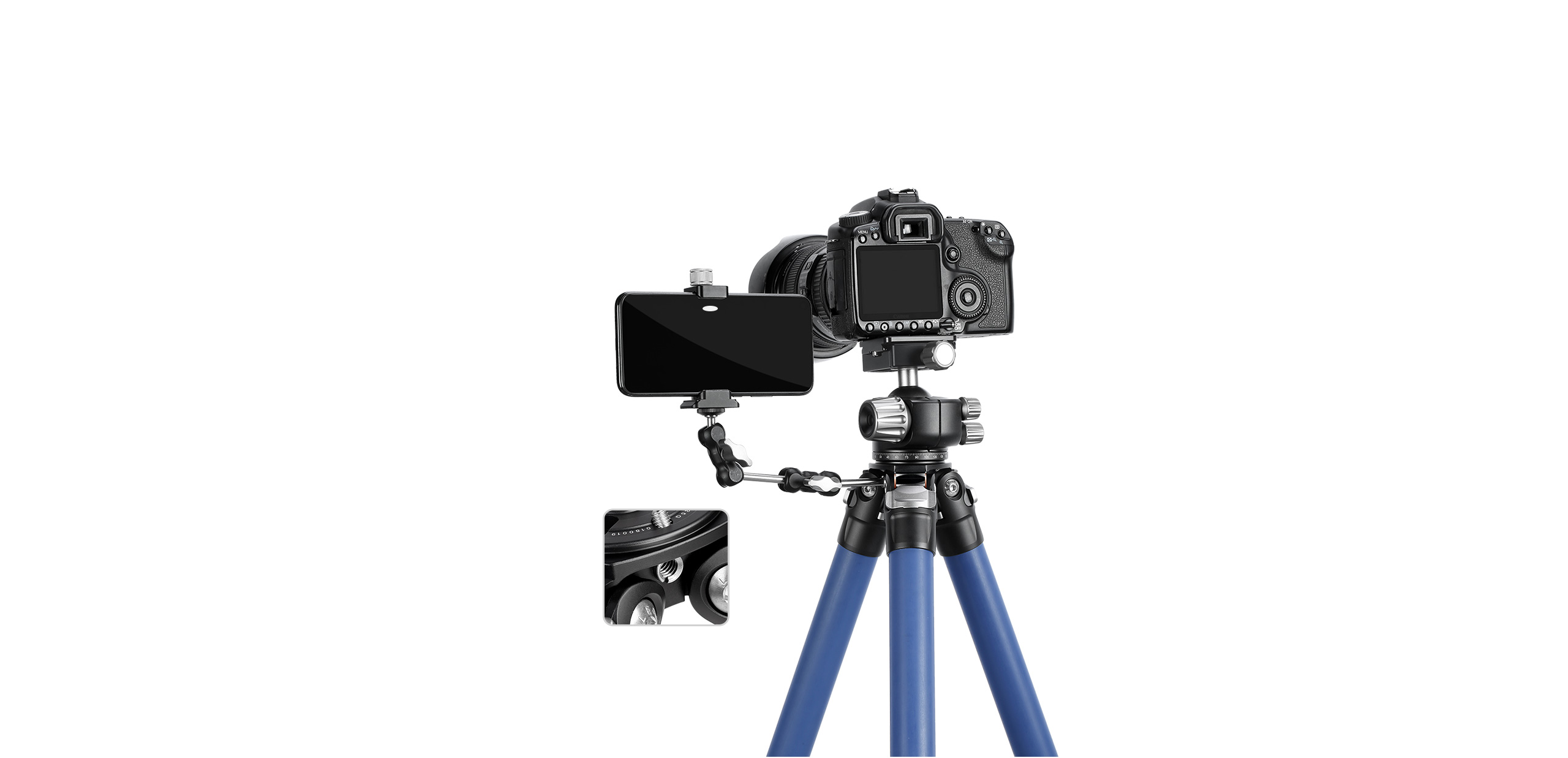 UNC 1/4” mounting holes on the botom and side of the leg joint are perfect for magic arms and smartphones.