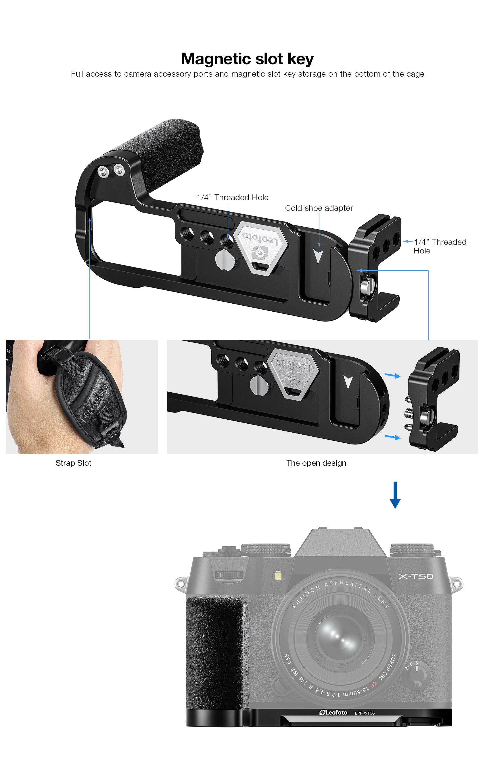 Leofoto LPF-T50(Black) L Plate for FUJIFILM T50(Black) Camera