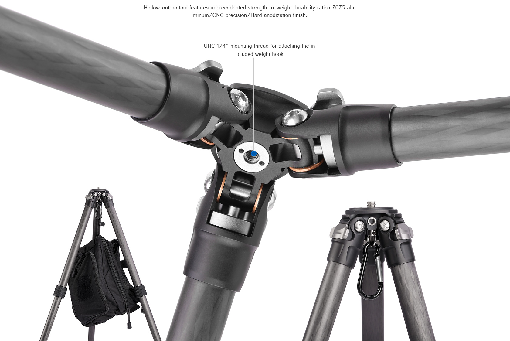 Toray 100% 10-layer carbon fiber leg tubes feature cross rhombus structure for greater strength, stability and less vibration.