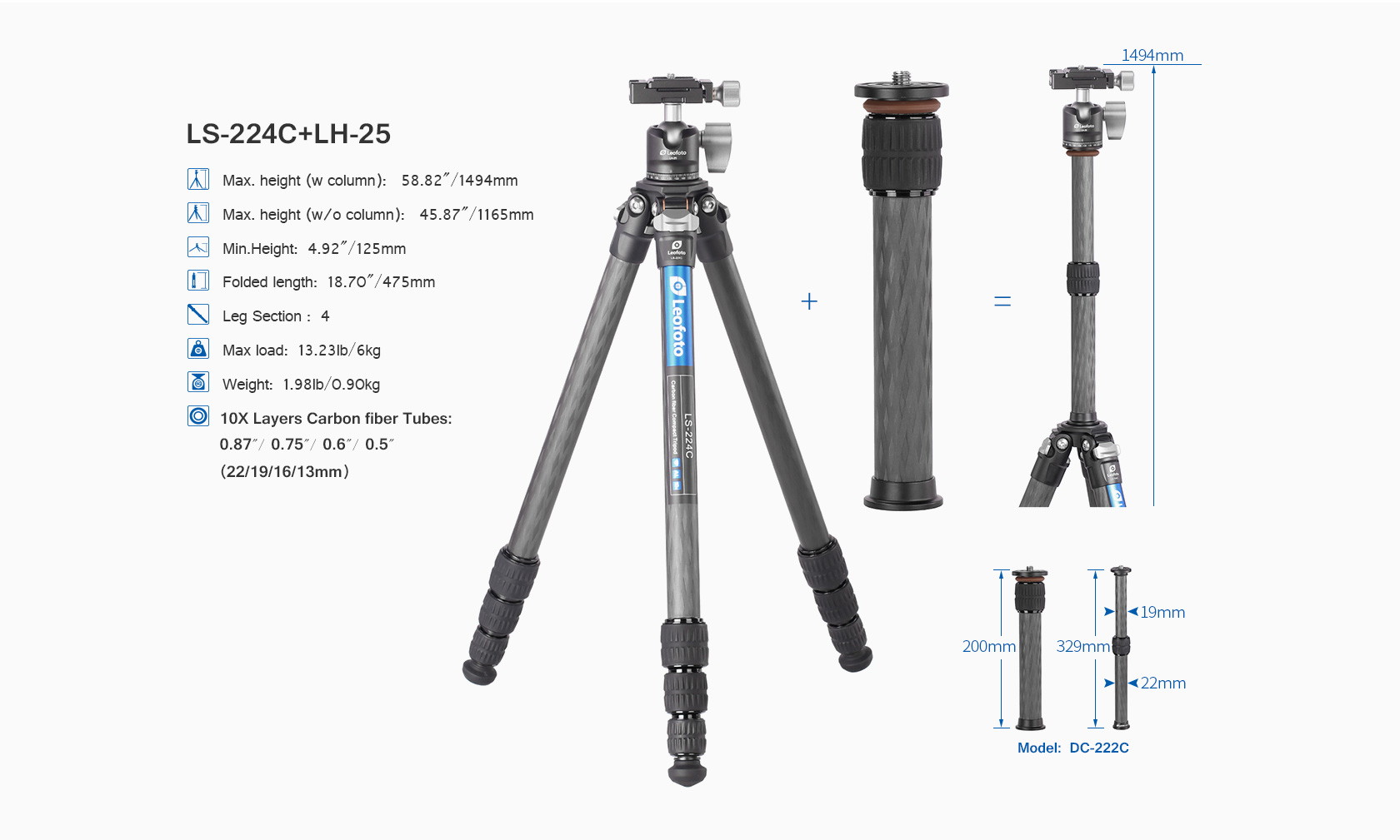 Leofoto LS-224C+LH-25 Professional carbon fiber tripod