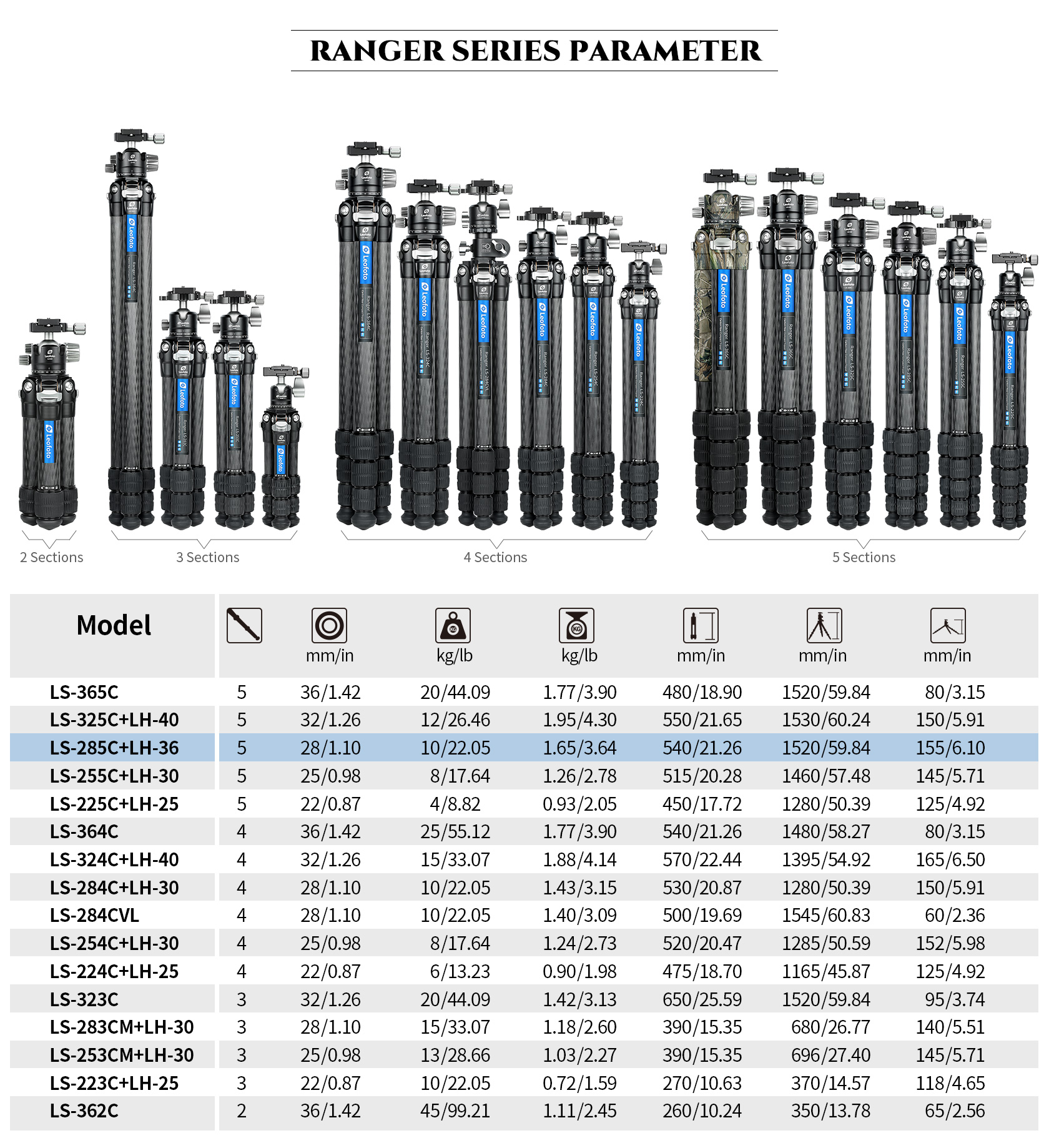 Leofoto LS-285C+LH-36 Professional carbon fiber tripod