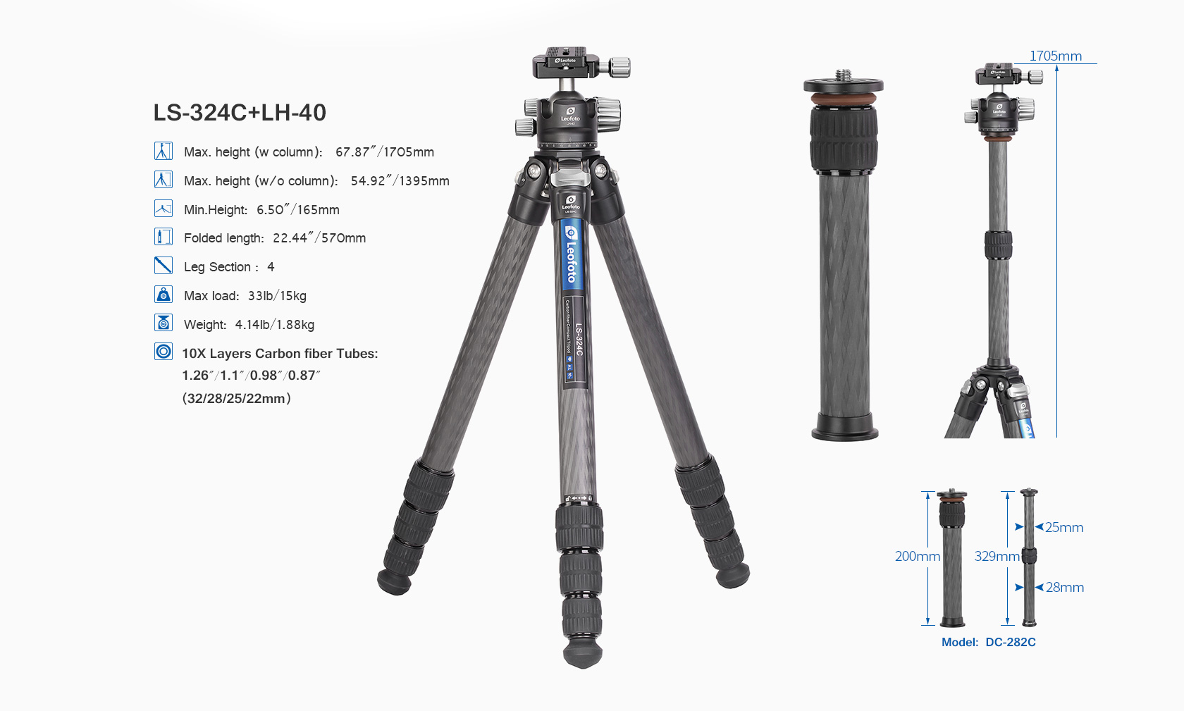 Leofoto LS-324C+LH-40 Professional carbon fiber tripod