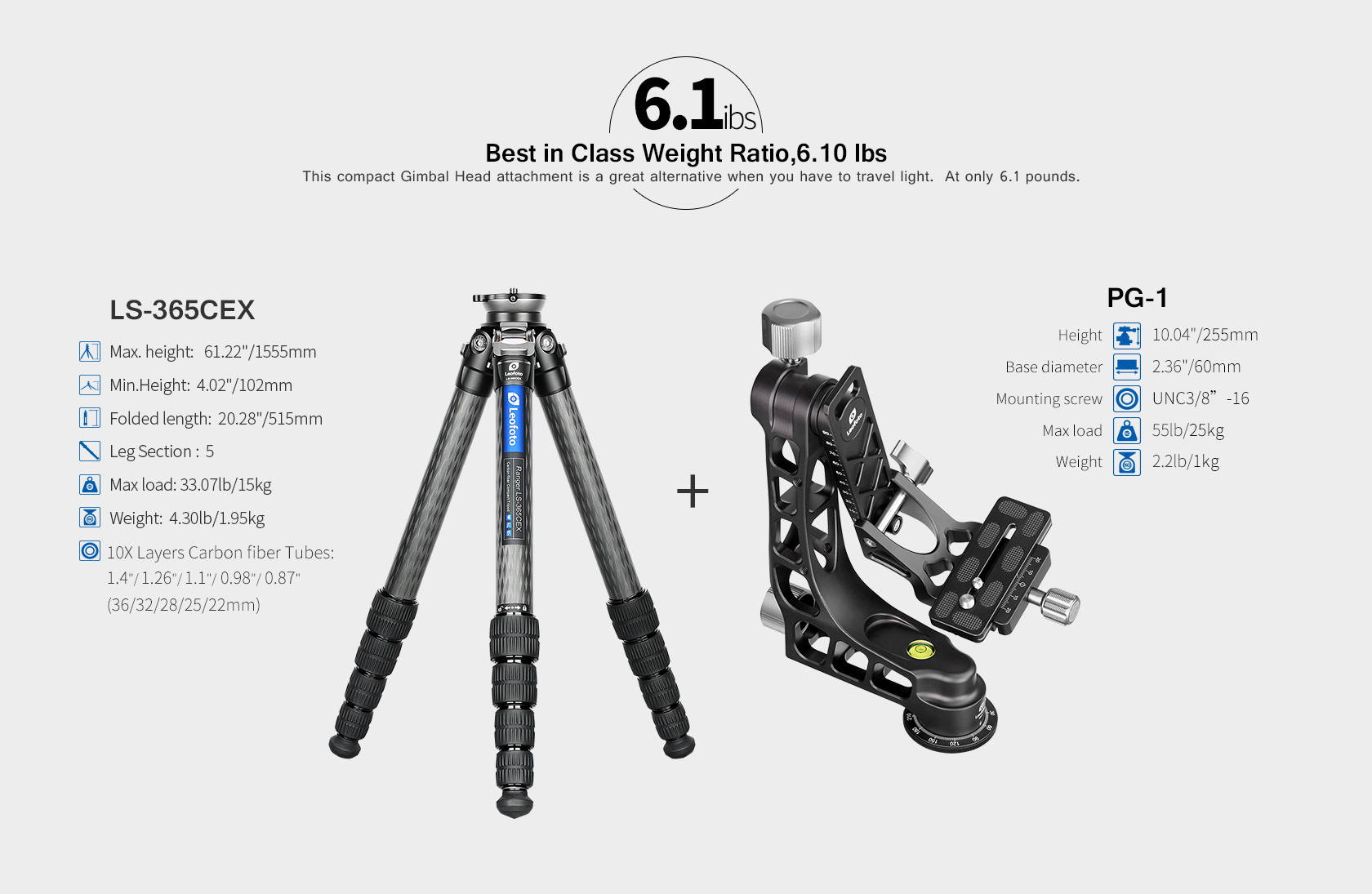 Leofoto LS-365CEX+PG-1 Professional carbon fiber tripod