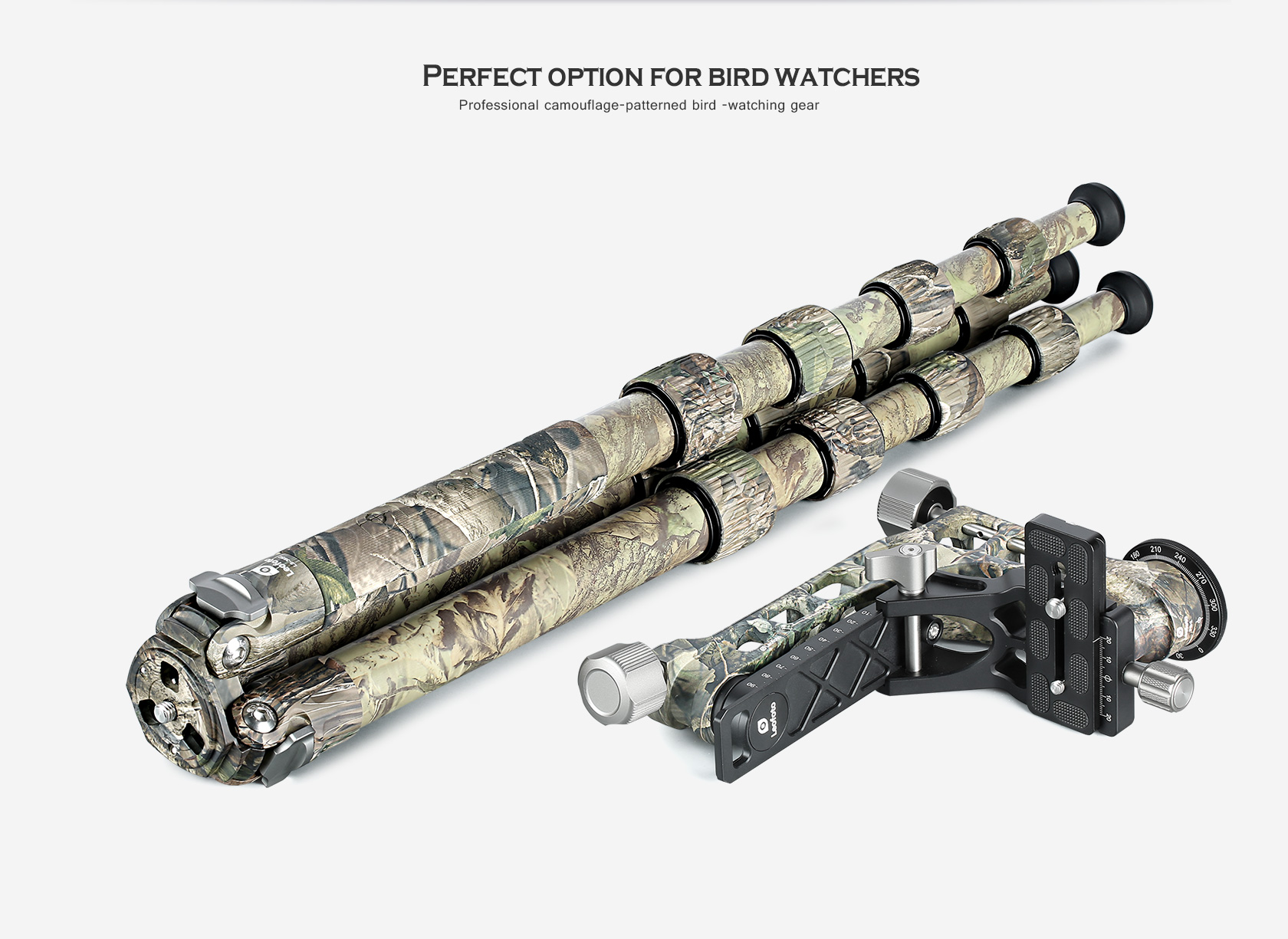 • Professional camouflage-patterned bird -watching gear
