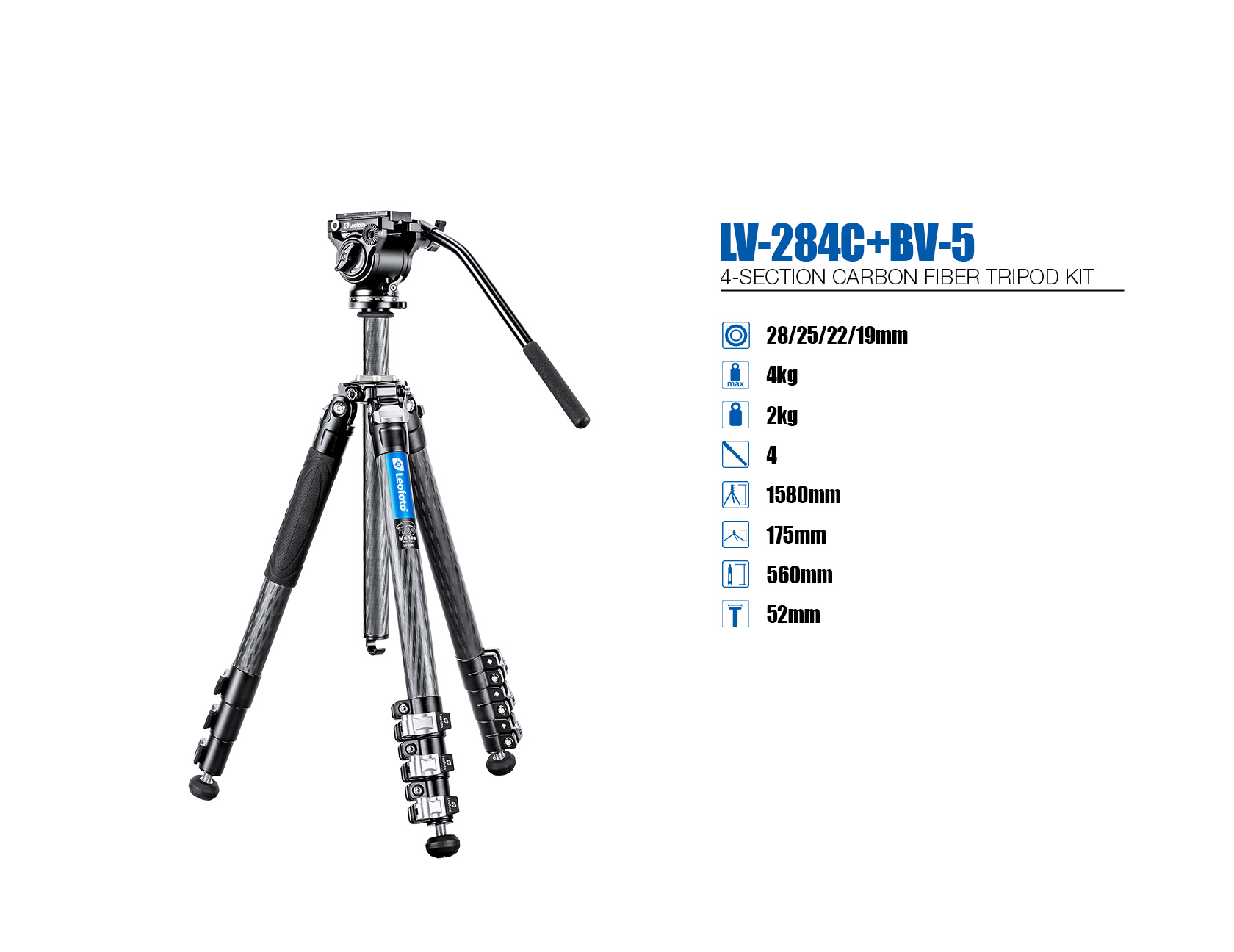 Leofoto LV-284C+BV-5 Professional carbon fiber tripod