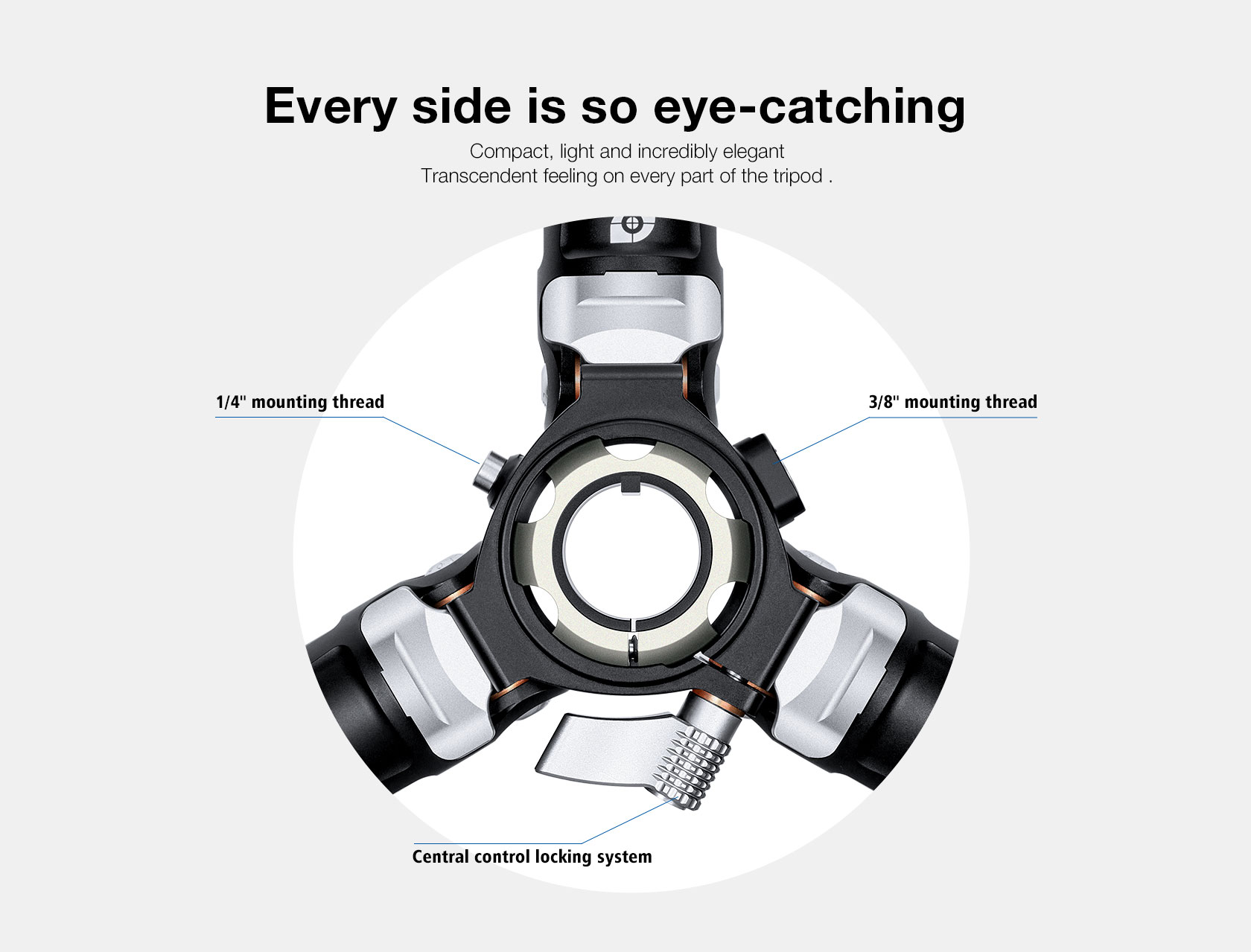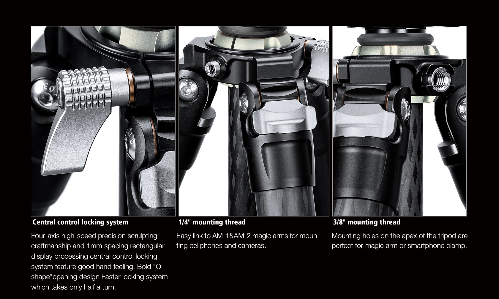 * 3/8″-16 and 1/4″-20 accessory mounting sockets