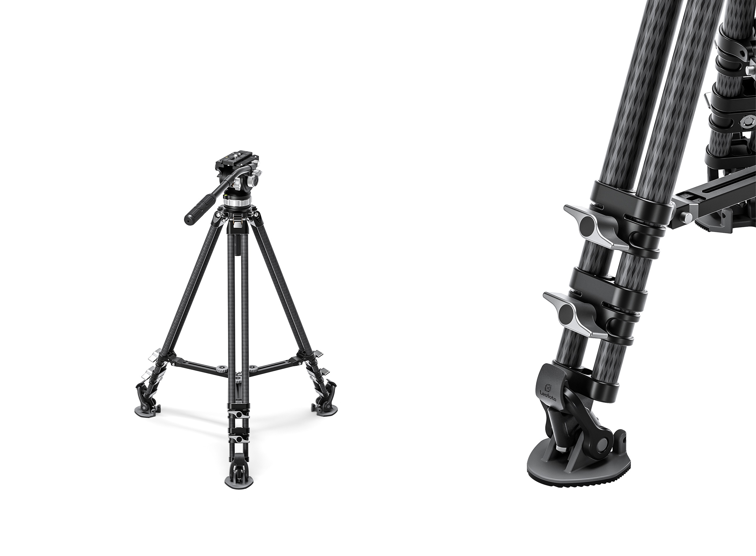 Stainless steel spike feet and hoof-shaped rubber feet make the tripod more flexible in different environments.