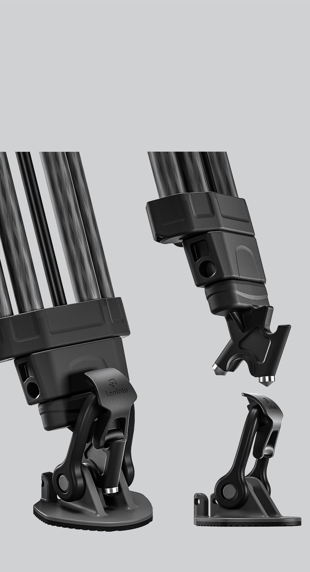 Stainless steel spike feet and hoof-shaped rubber feet make the tripod more flexible in different environments.