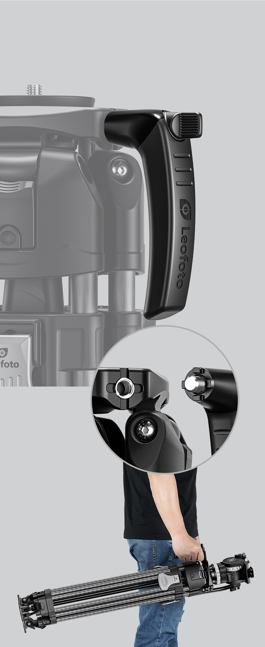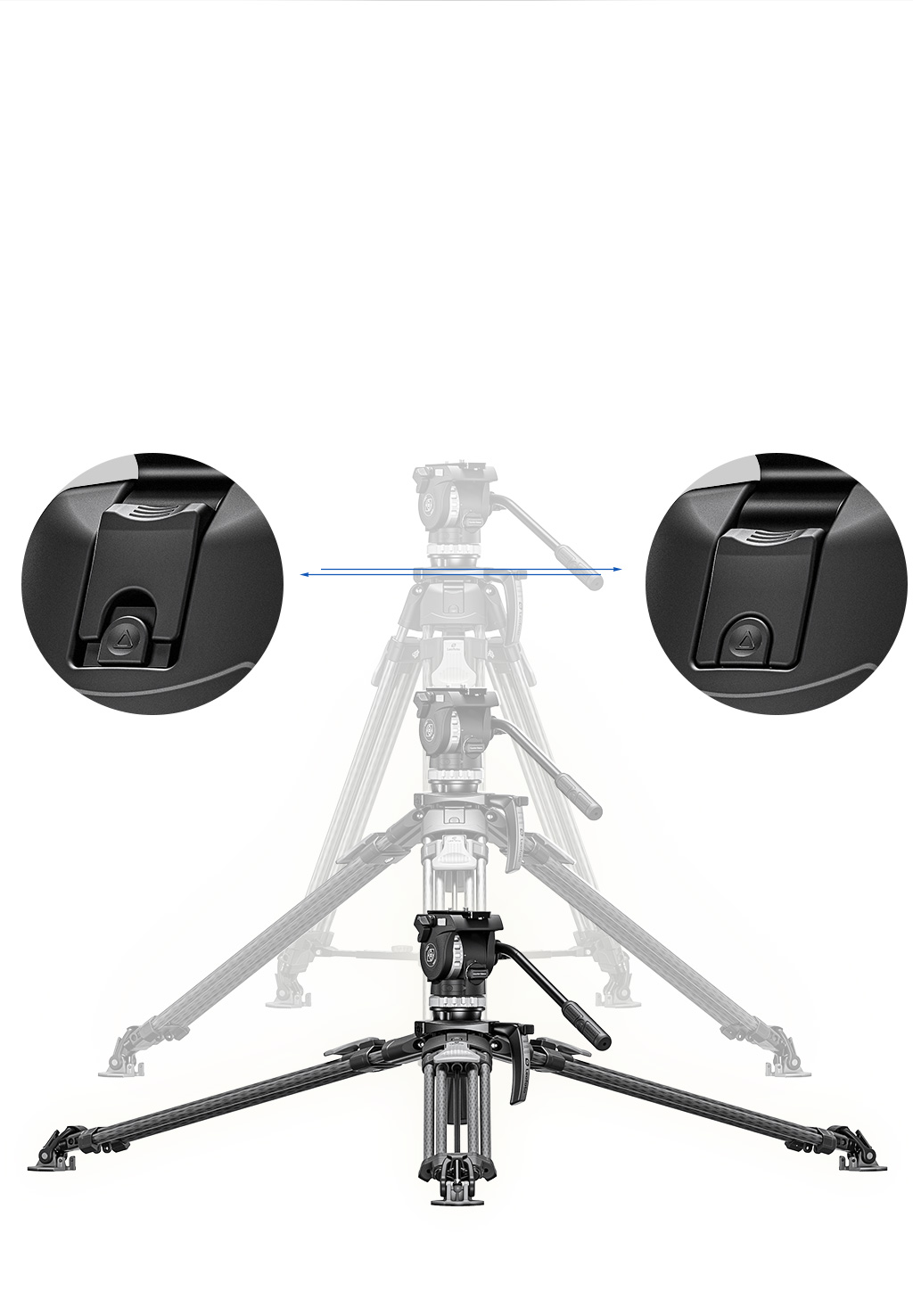 The re-designed flip leg locking system optimizes efficiency during operation, and further compresses the size profile of this tripod.