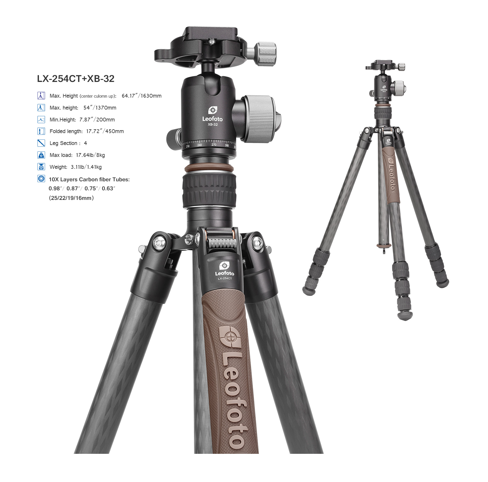 Leofoto LX-254CT+XB-32 Professional carbon fiber tripod