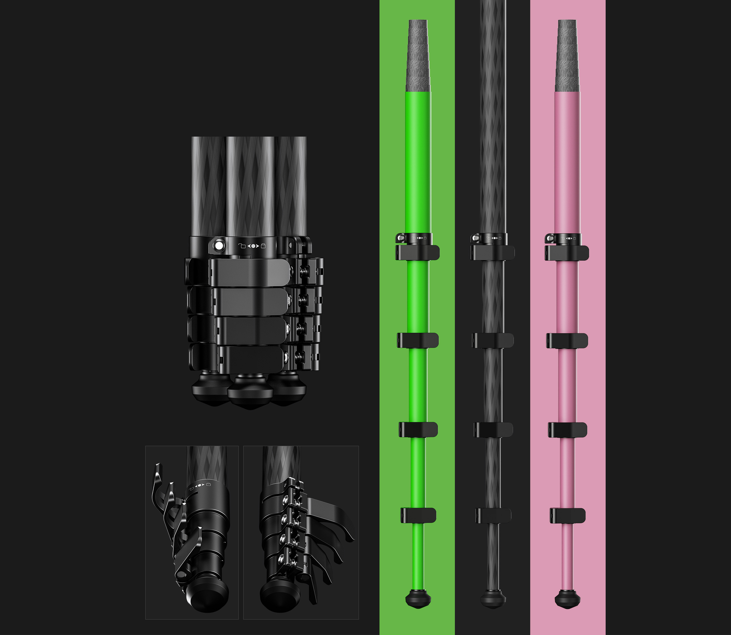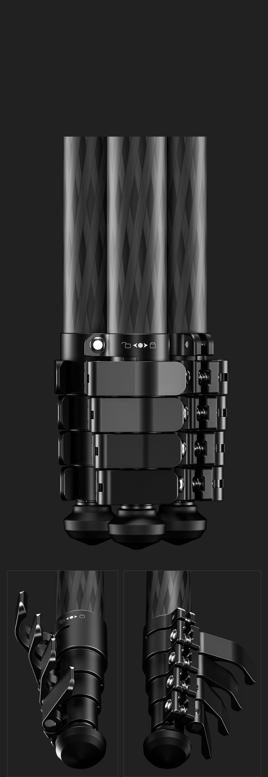 The triangular center column shape allows the tripod leg tubes to collapse more tightly than the traditional center column design. This reduces the overall footprint of the tripod and creates the most compact setup for both storage and portability.