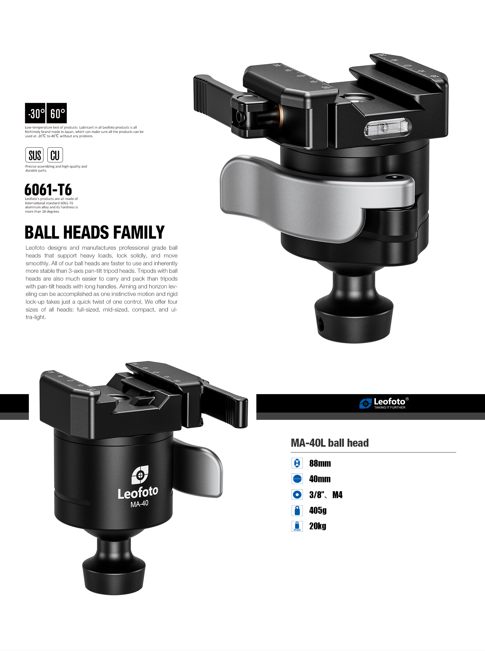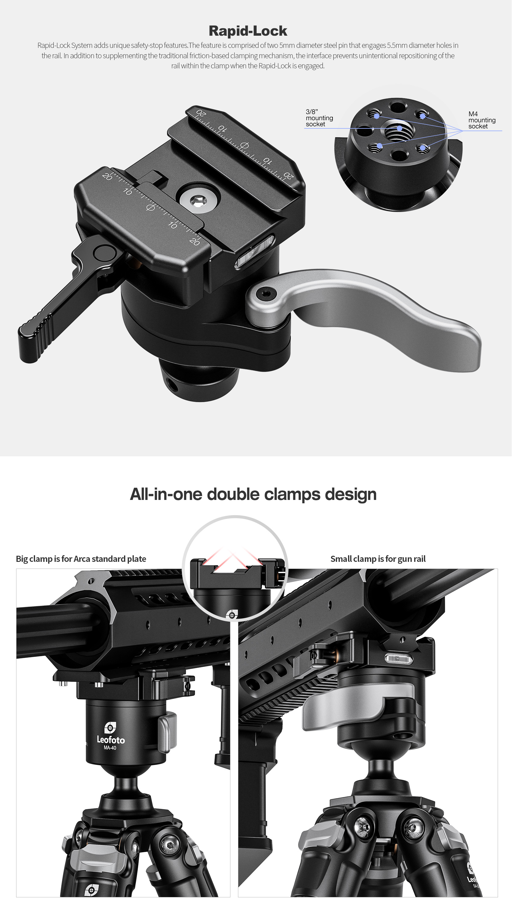 / Leofoto MA-40L Outdoors Lever-Release Rapid Lock Ball Head | Arca & Picatinny